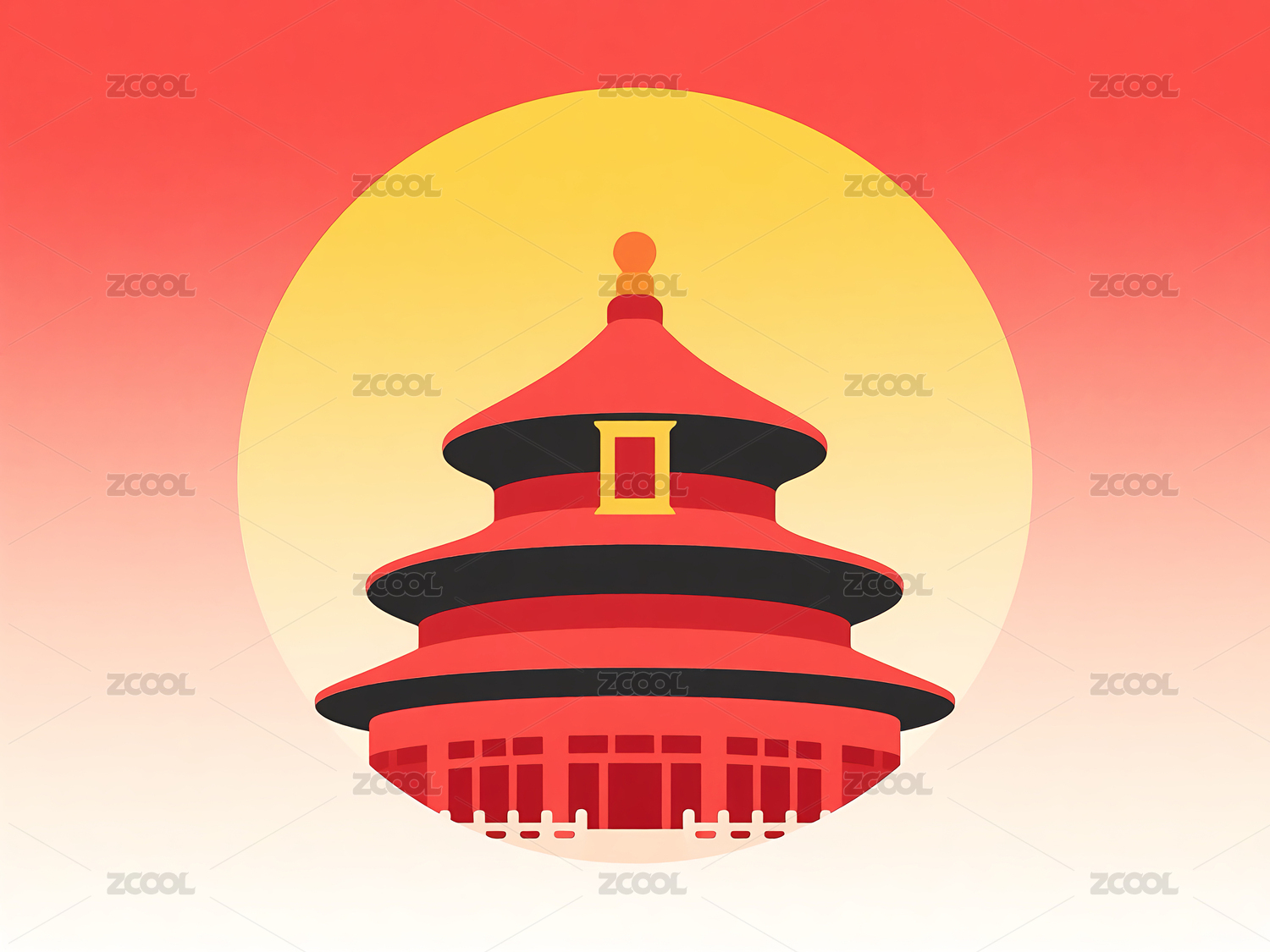 建筑元素,天坛,插画,扁平风,复古,城市印象