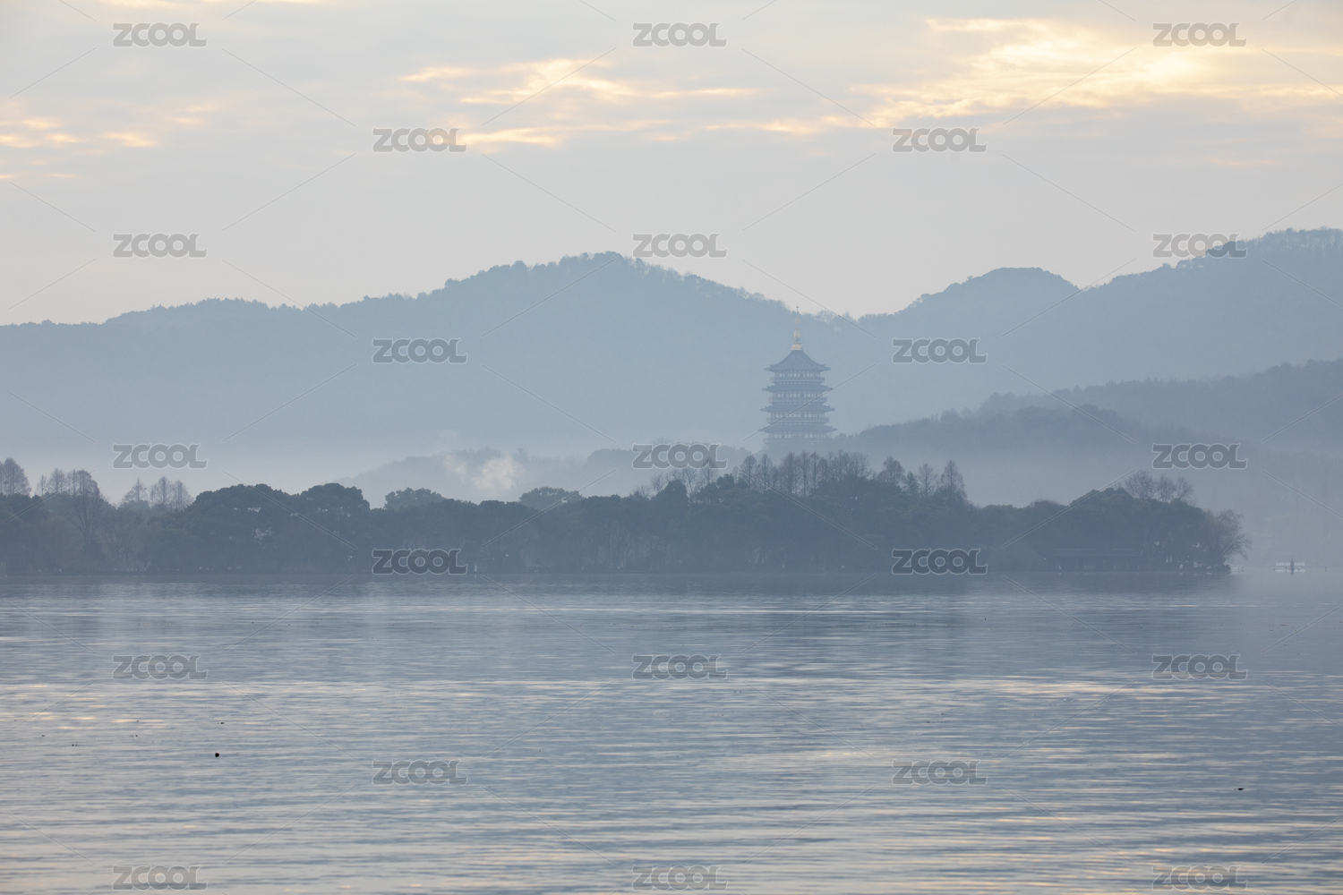 秋天西湖早晨风光