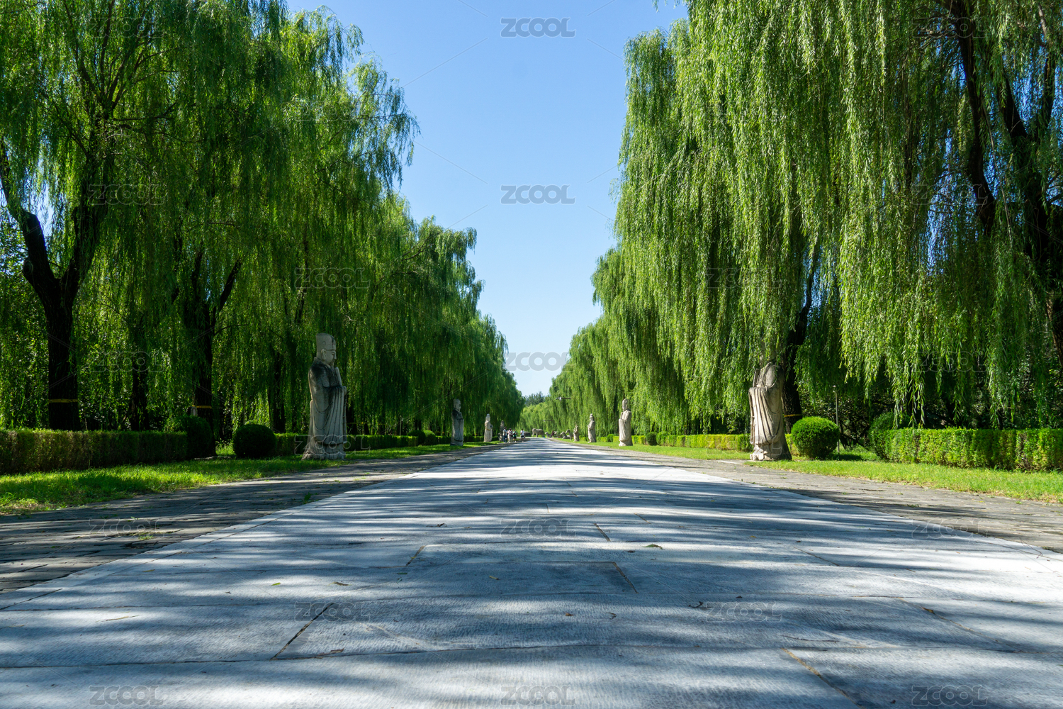蓝天白云下的中国北京明十三陵长陵神道(神路)