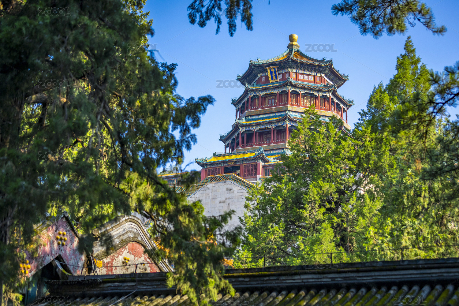 蓝天下的深山故宫-四川省平武县报恩寺屋檐铃铛特写