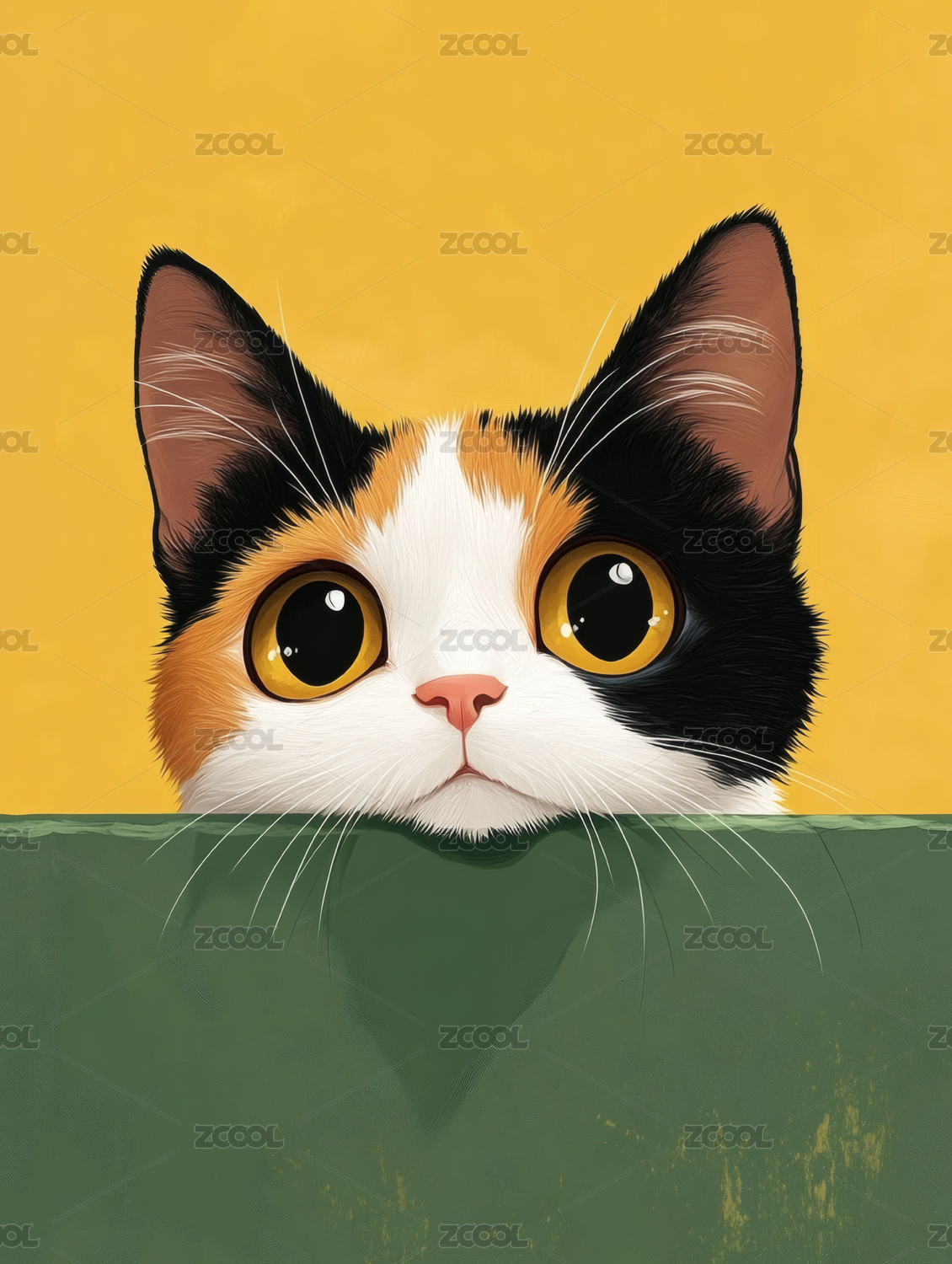 可爱猫表情贴纸时尚卡通涂鸦壁纸插画