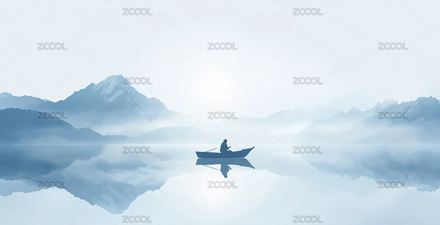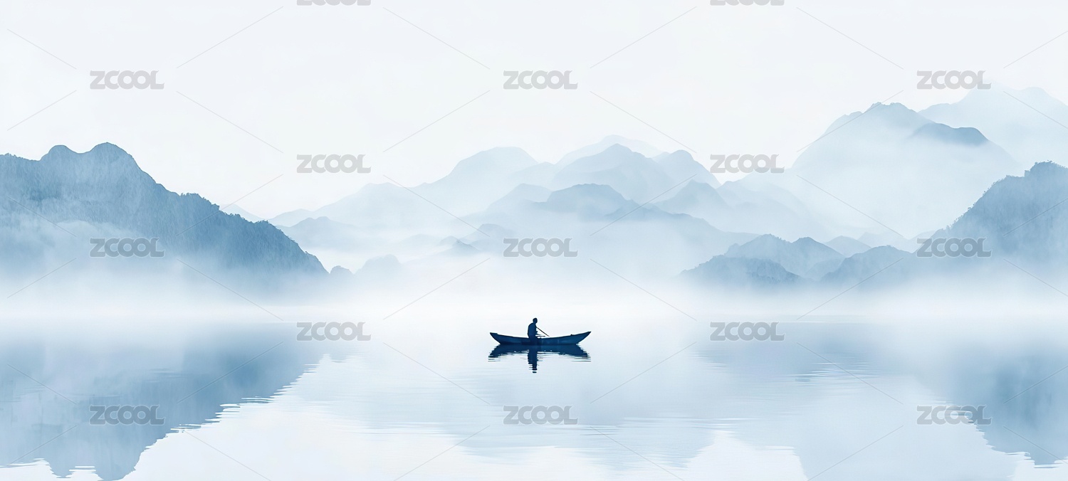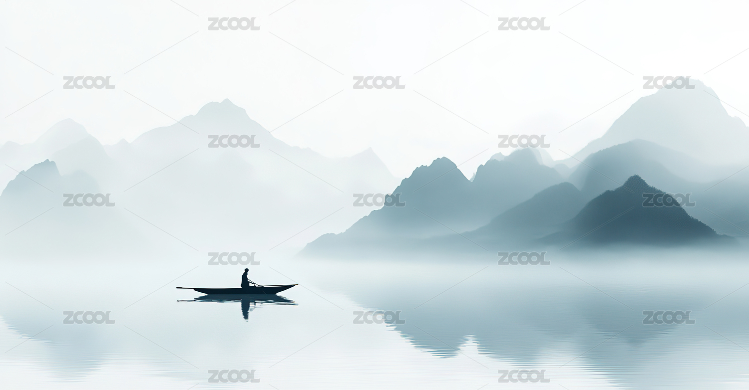 自然,天空,山峰,宁静,祥和,远山,景色,意境,水墨画,湖泊