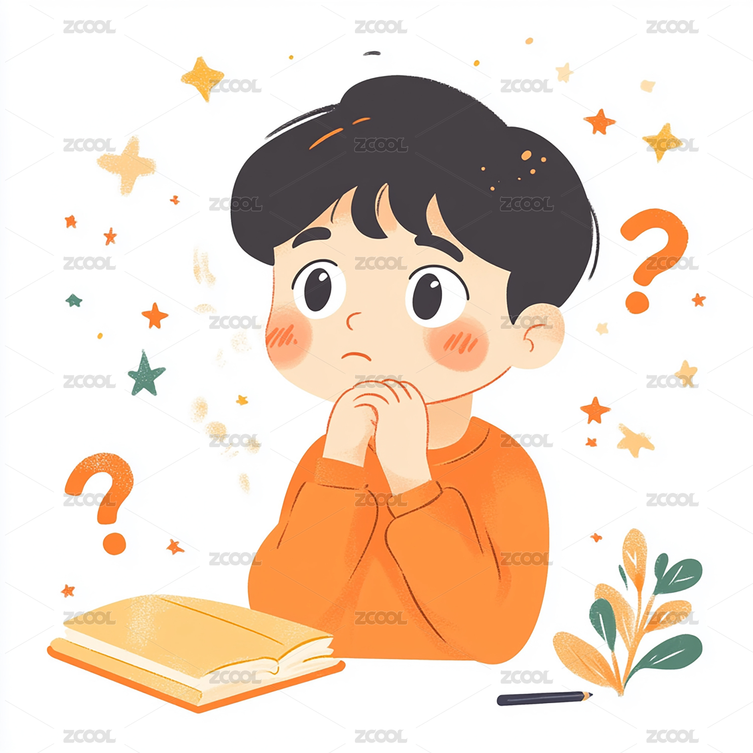 拿着书本发出疑问的男孩插画