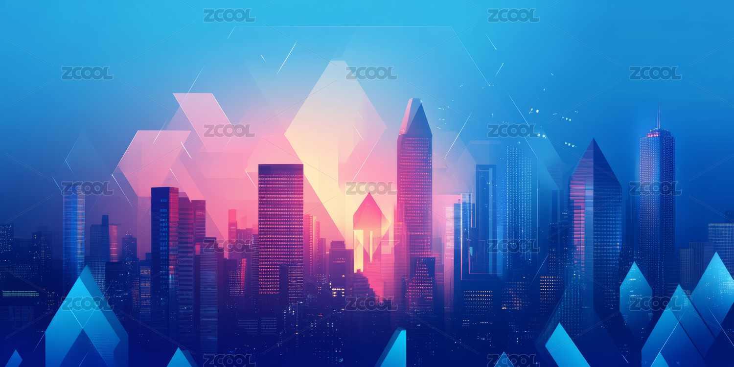 蓝色商务科技未来玻璃质感图形设计城市建筑