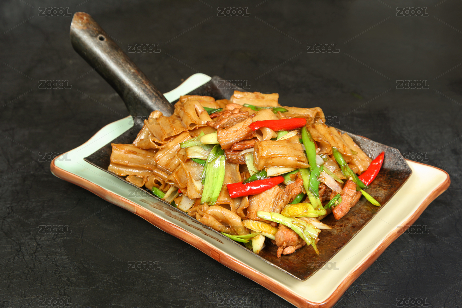 米椒蒜苗炒湘味腊肉片