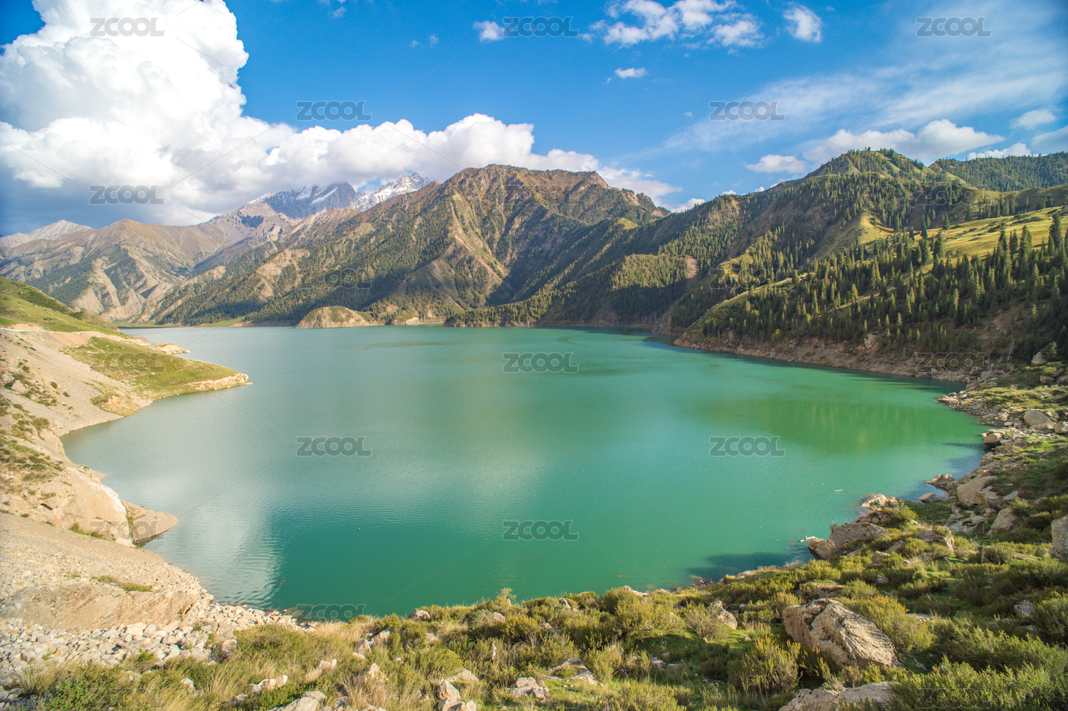 中国新疆独库公路 大龙池绿色清澈的湖水