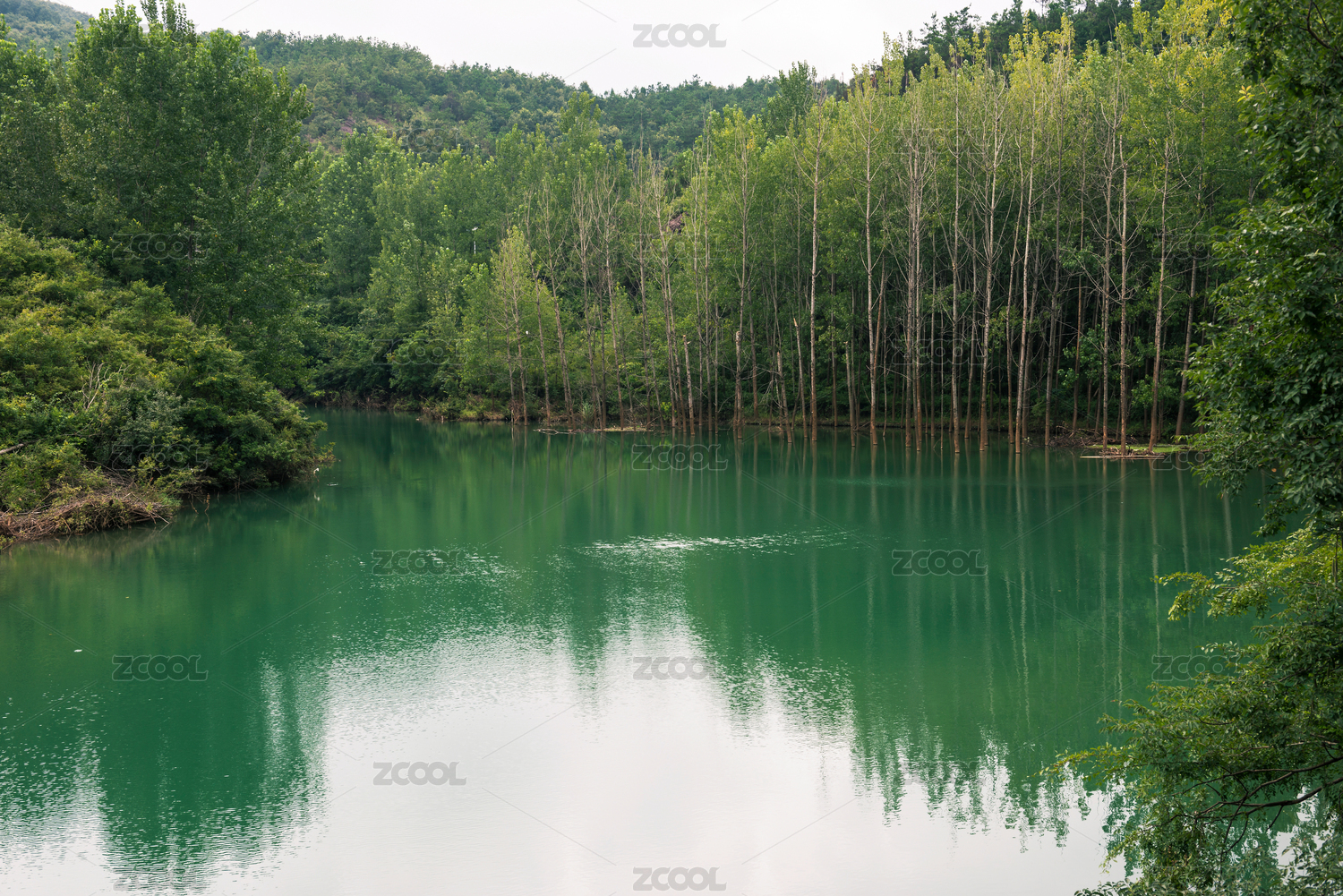 中国湖北京山美人谷碧潭和树林自然景观