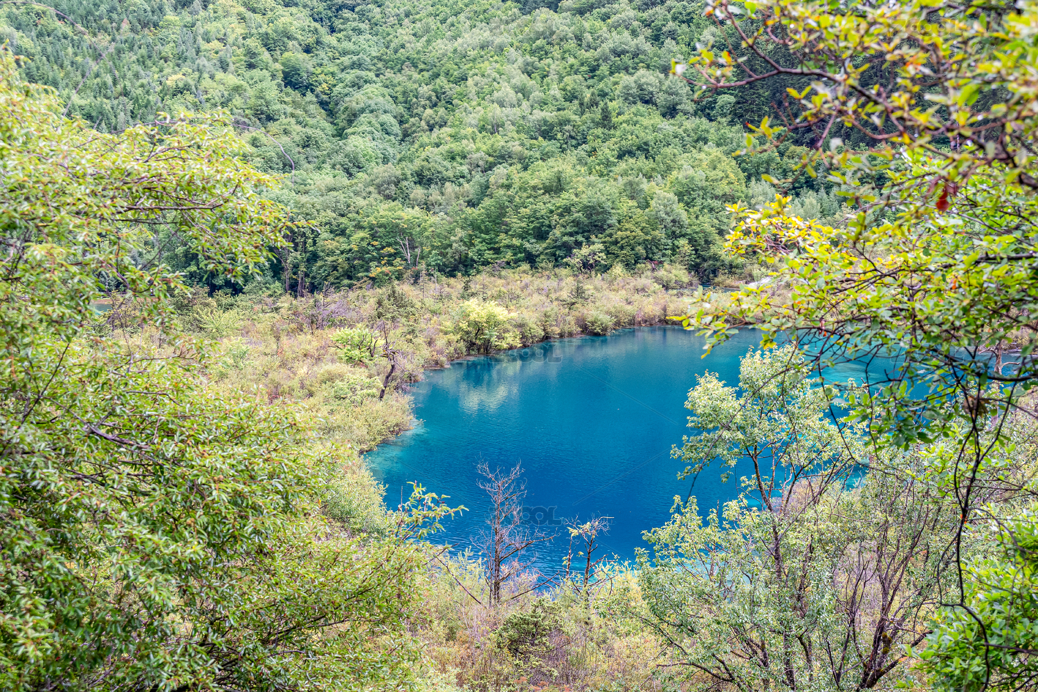 中国九寨沟风景区卧龙海景色