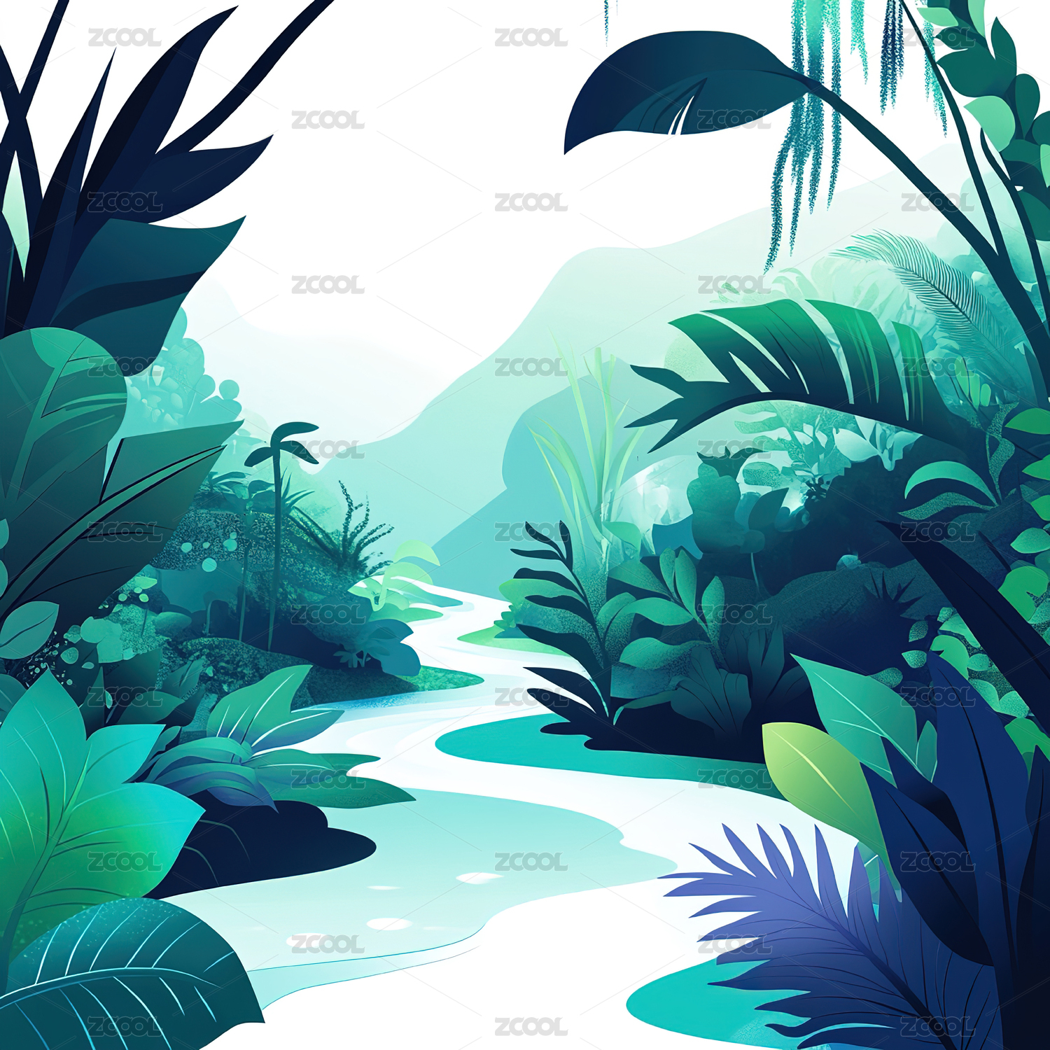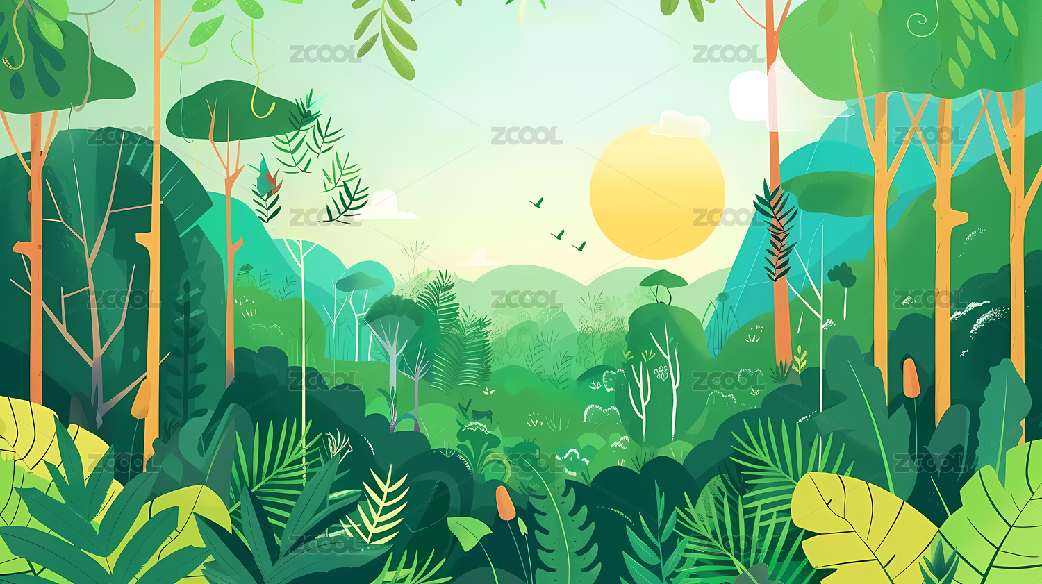 绿色植物风景插画
