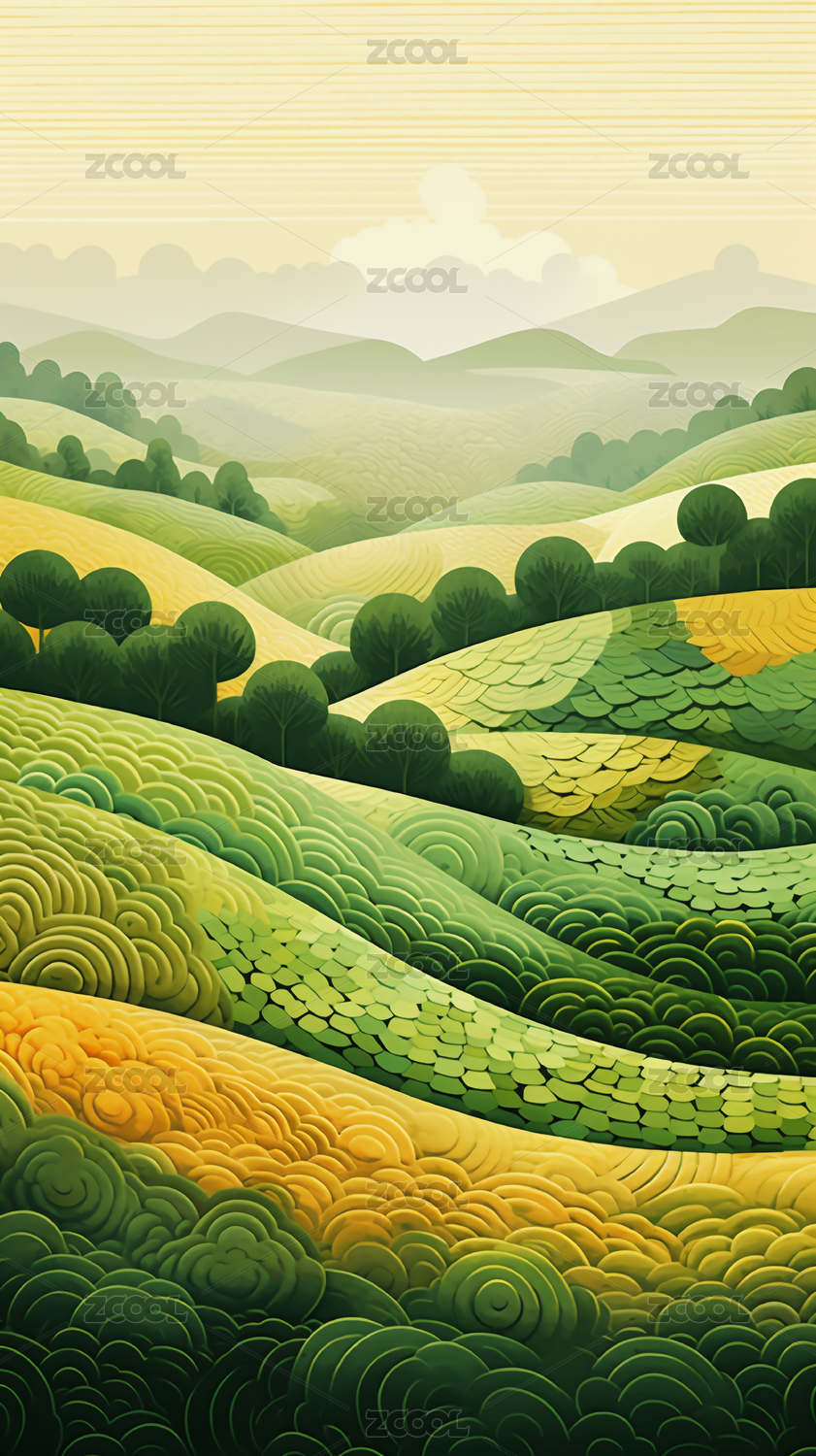 绿色山顶风景抽象艺术装饰画插画海报背景