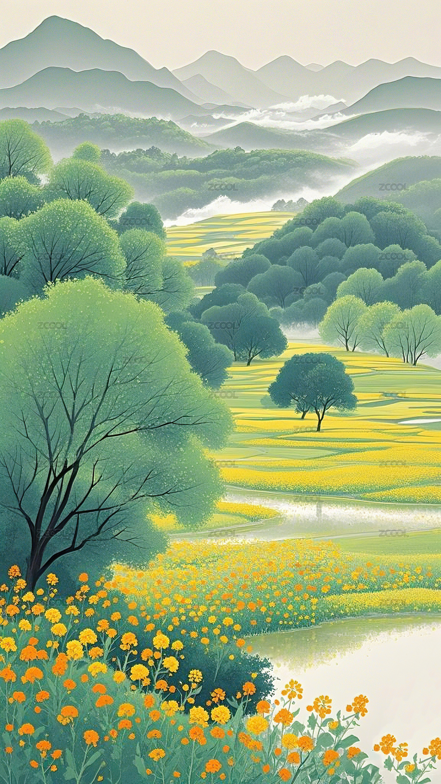 山水风景插画