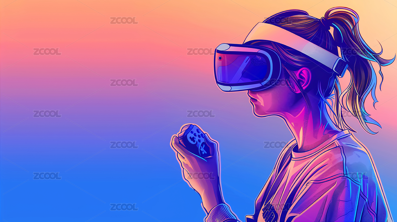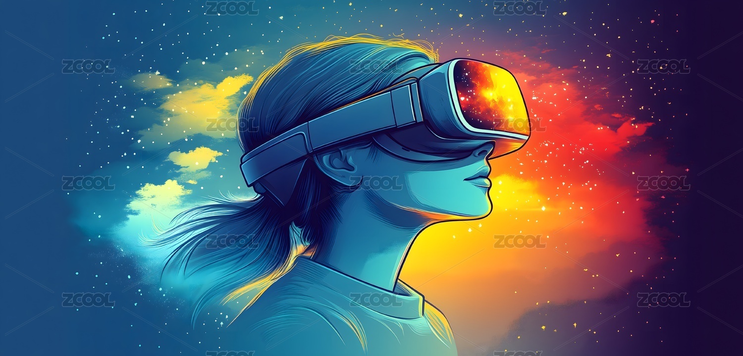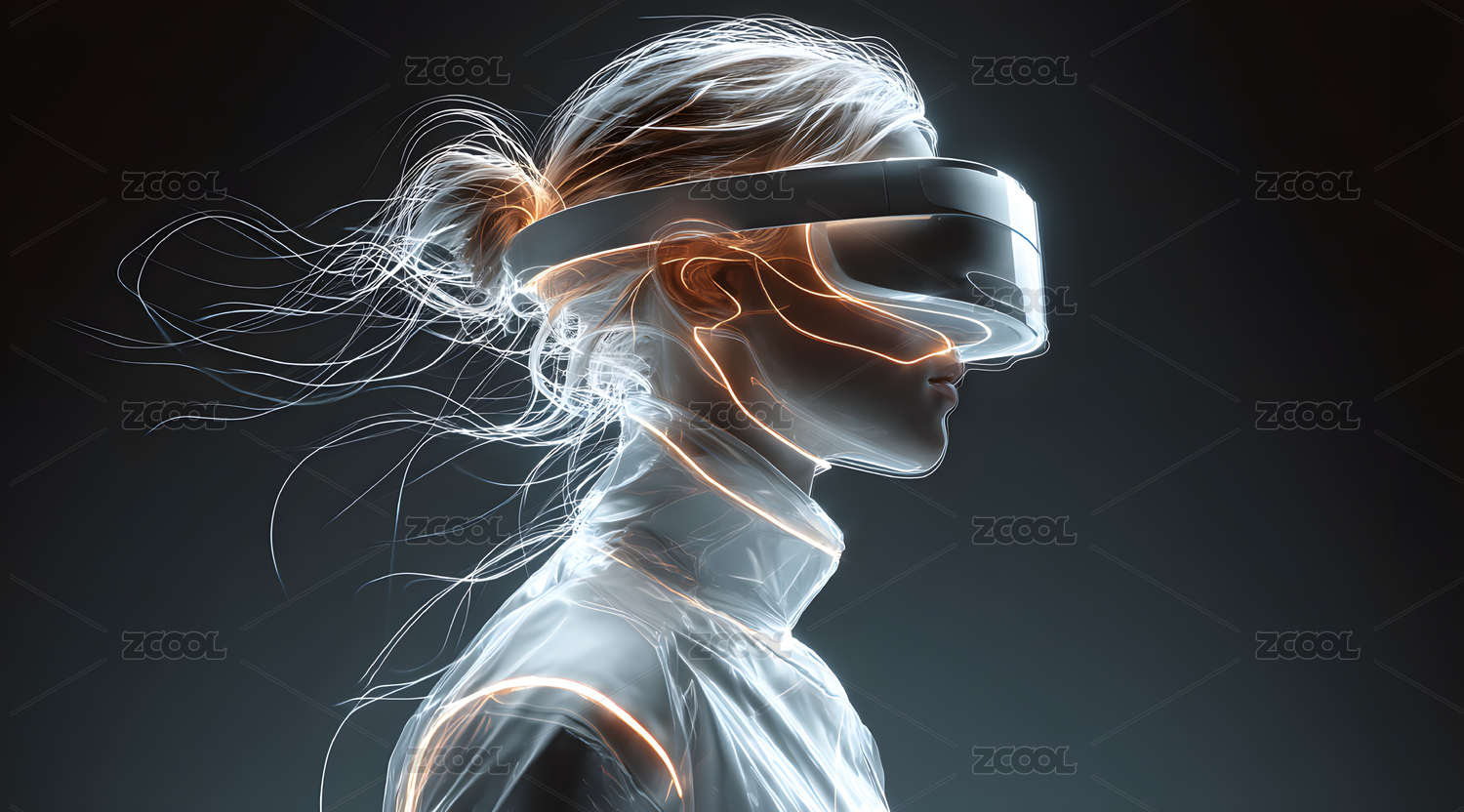 身穿黑衣的女孩戴着VR眼镜仰望星空