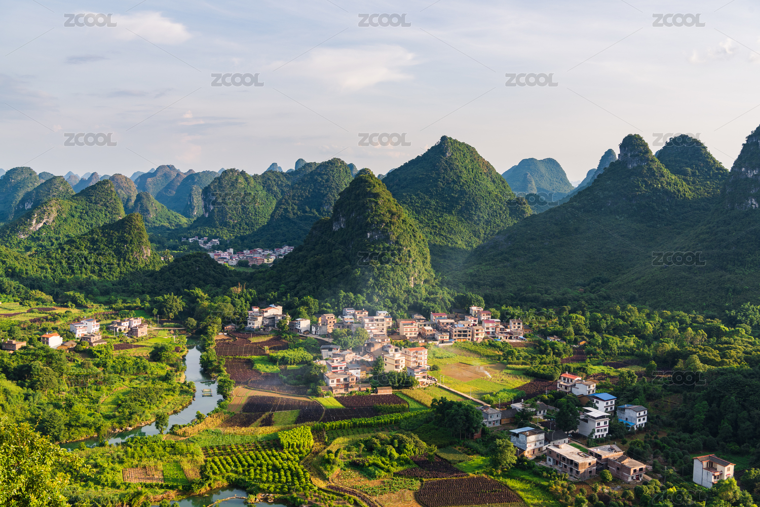 喀斯特地貌村庄群山拍摄于广西桂林柳州