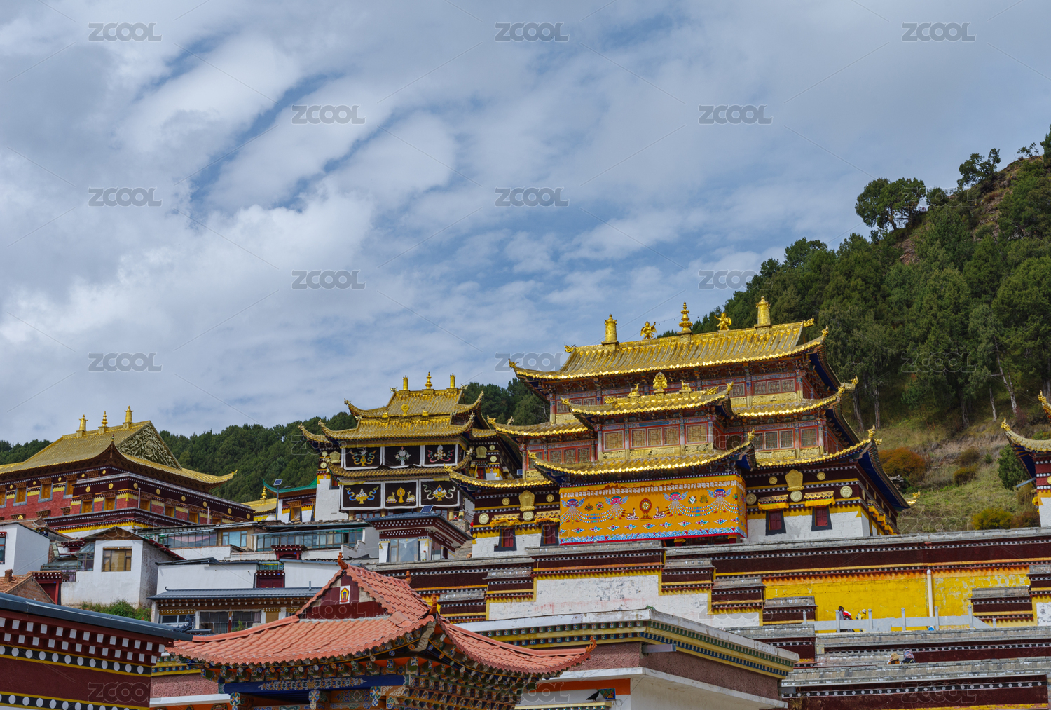 四川阿坝州松潘川主寺寺庙建筑和屋顶