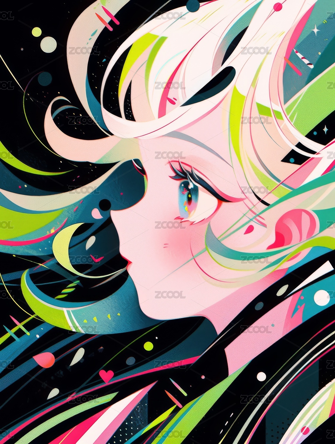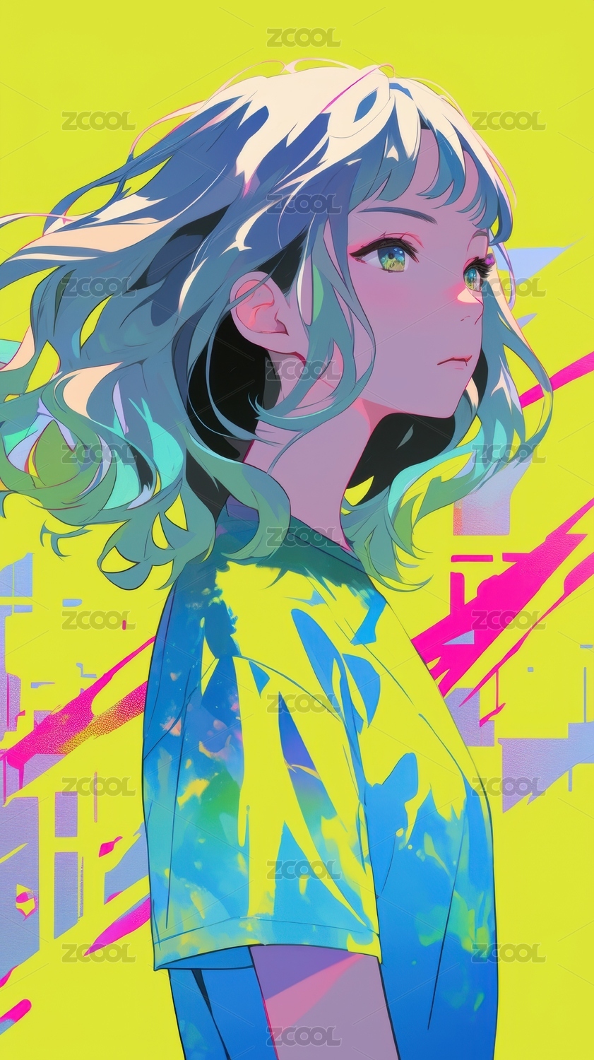 色彩斑斓的动漫少女肖像