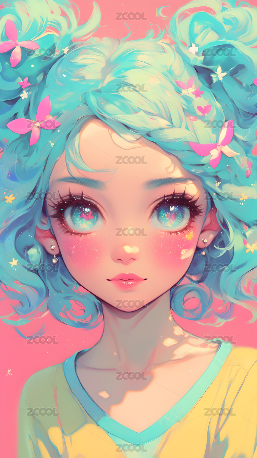 梦幻色彩的动漫少女肖像