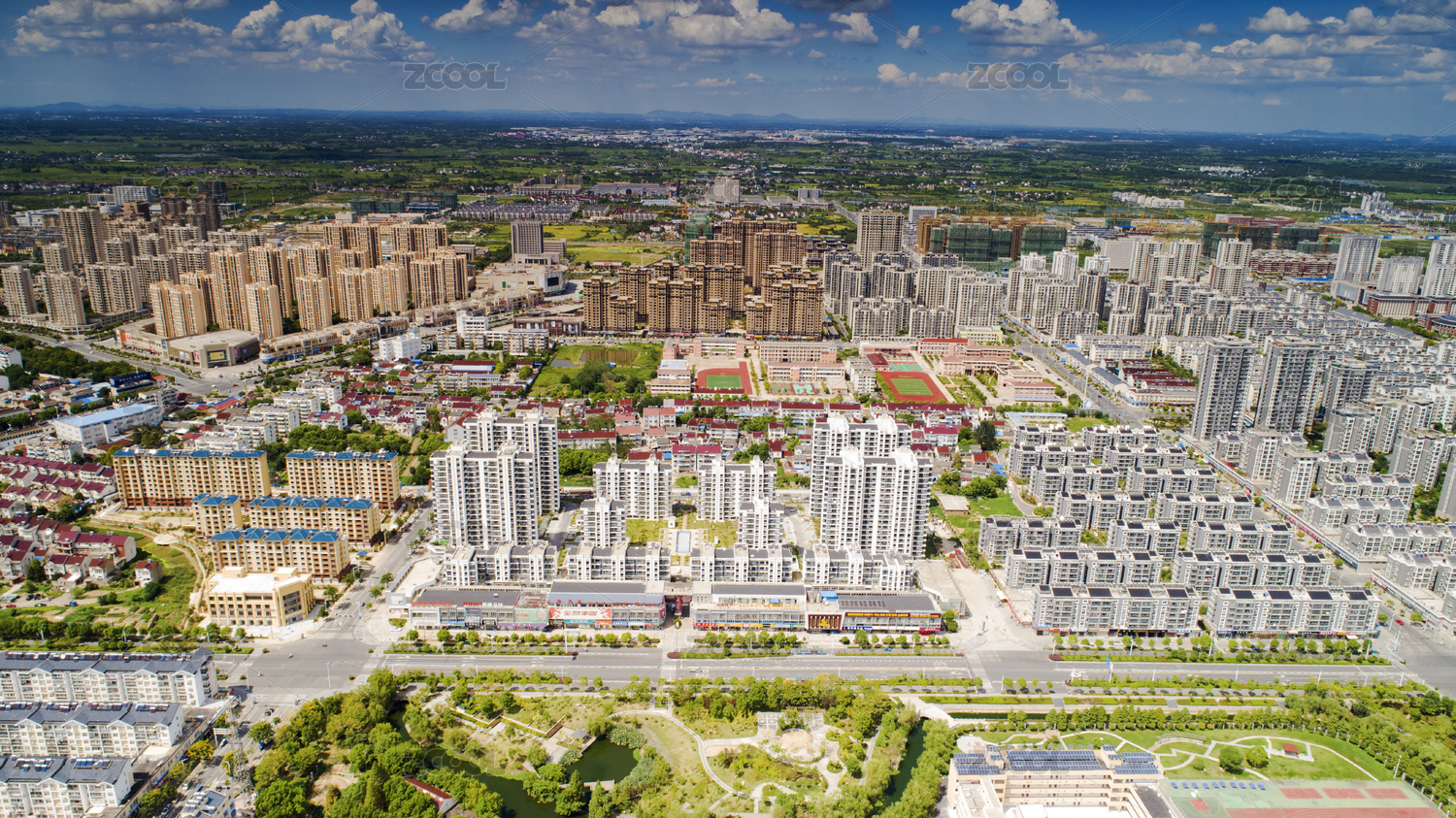 鸟瞰安徽省郎溪县城,蓝天白云生态美