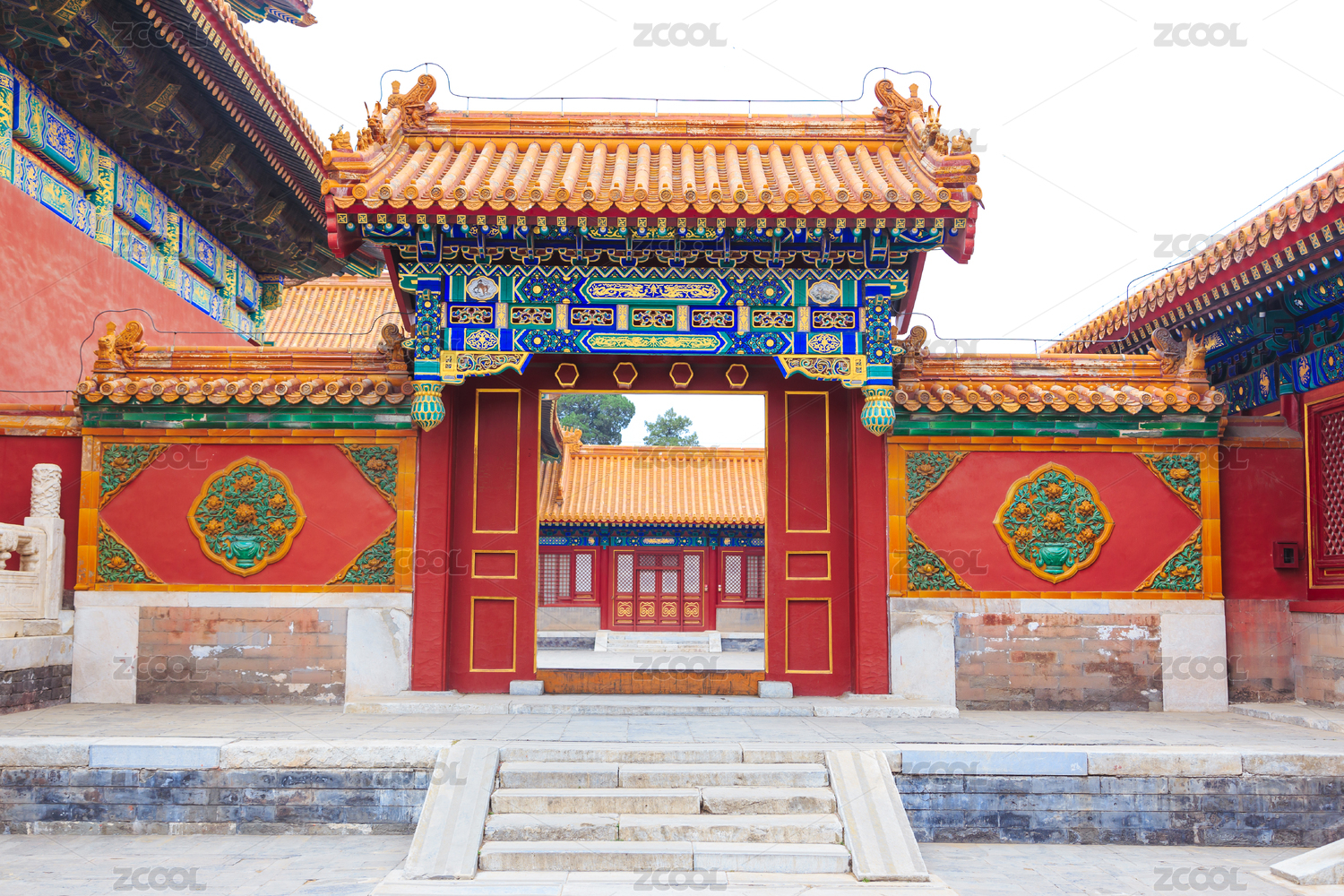 建筑,北京,孔庙,屋脊,屋顶,石阶,窗,门,图案,红漆柱