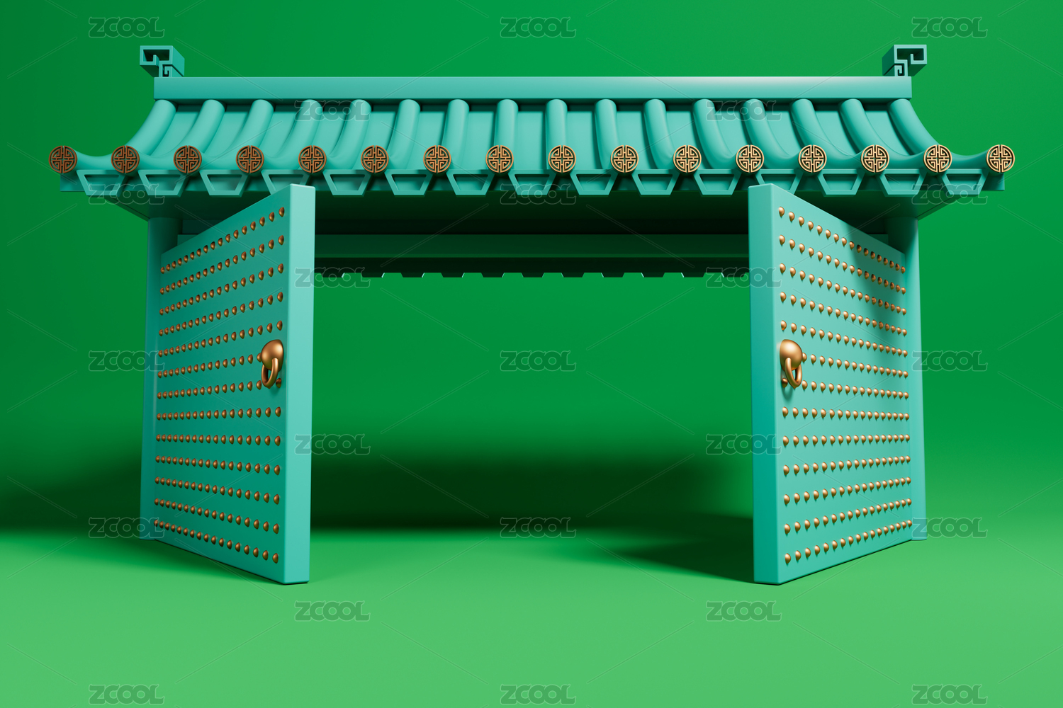 中式门楼红色建筑展示场景
