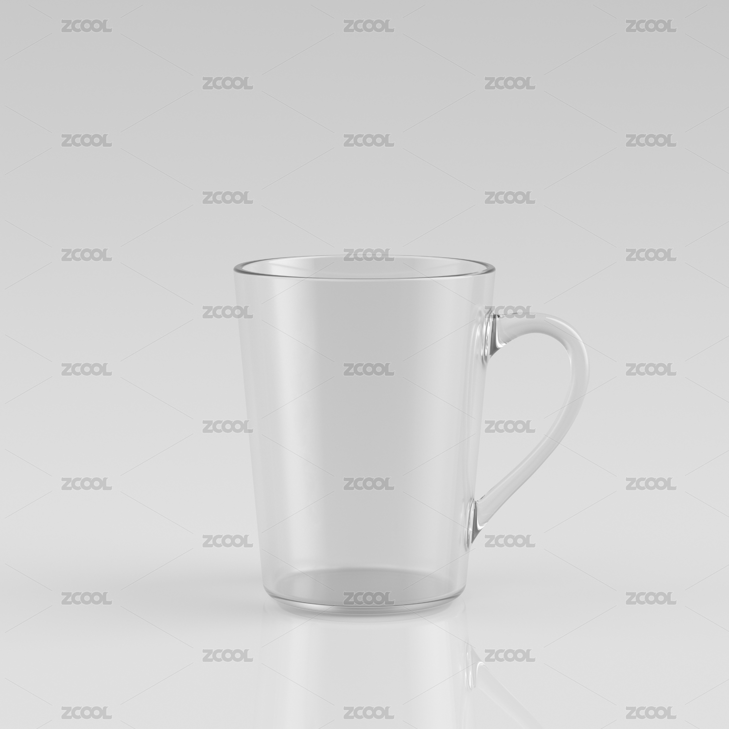 白色背景下的透明玻璃杯 3D渲染
