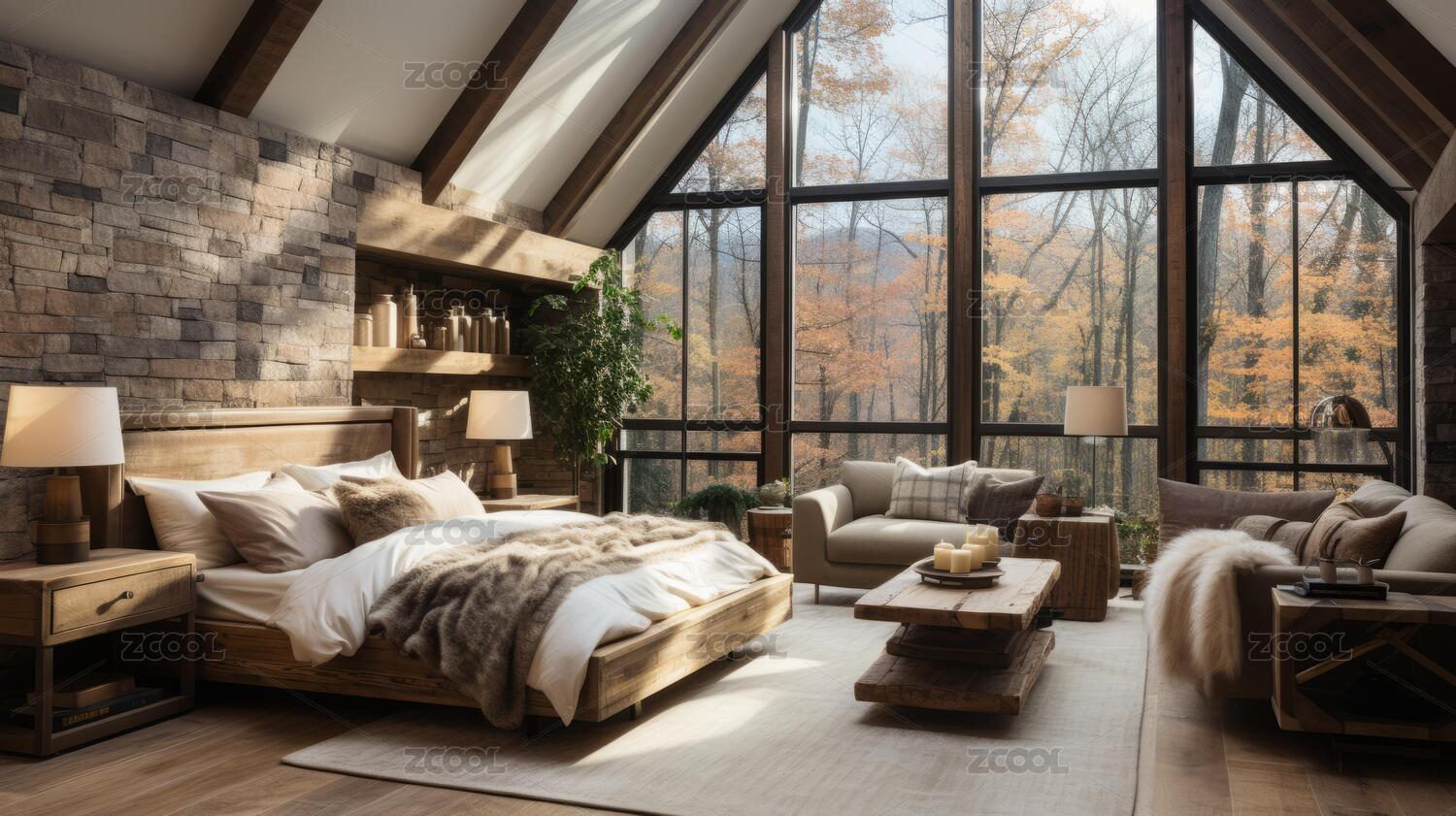森林小屋卧室宁静景象