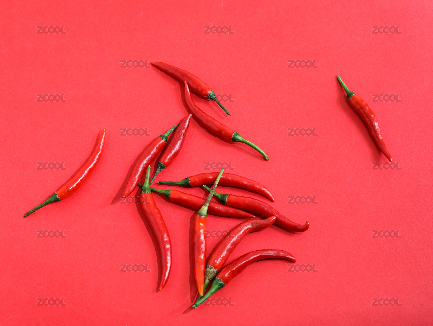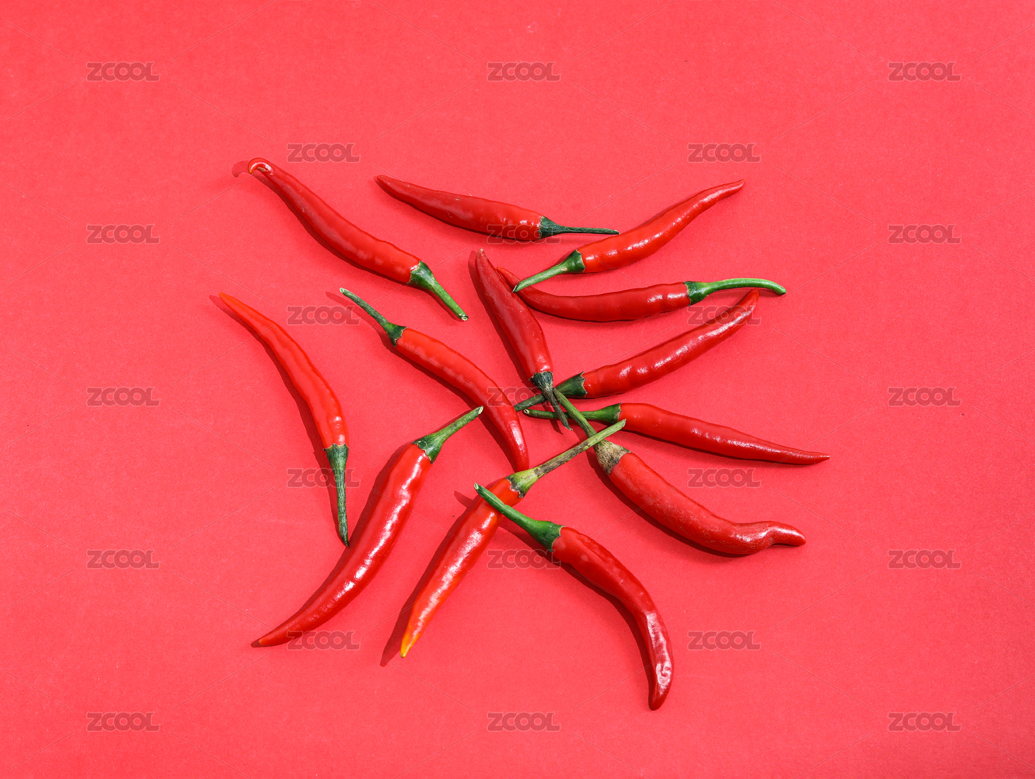 红色背景上热烈的蔬菜红辣椒小米椒朝天椒