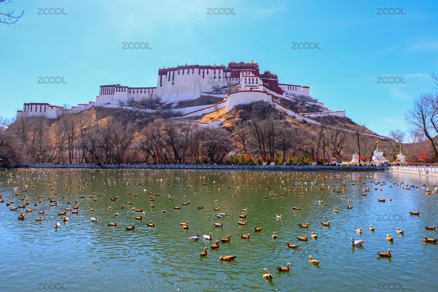中国藏拉萨布达拉宫后宗角禄康公园里的候鸟