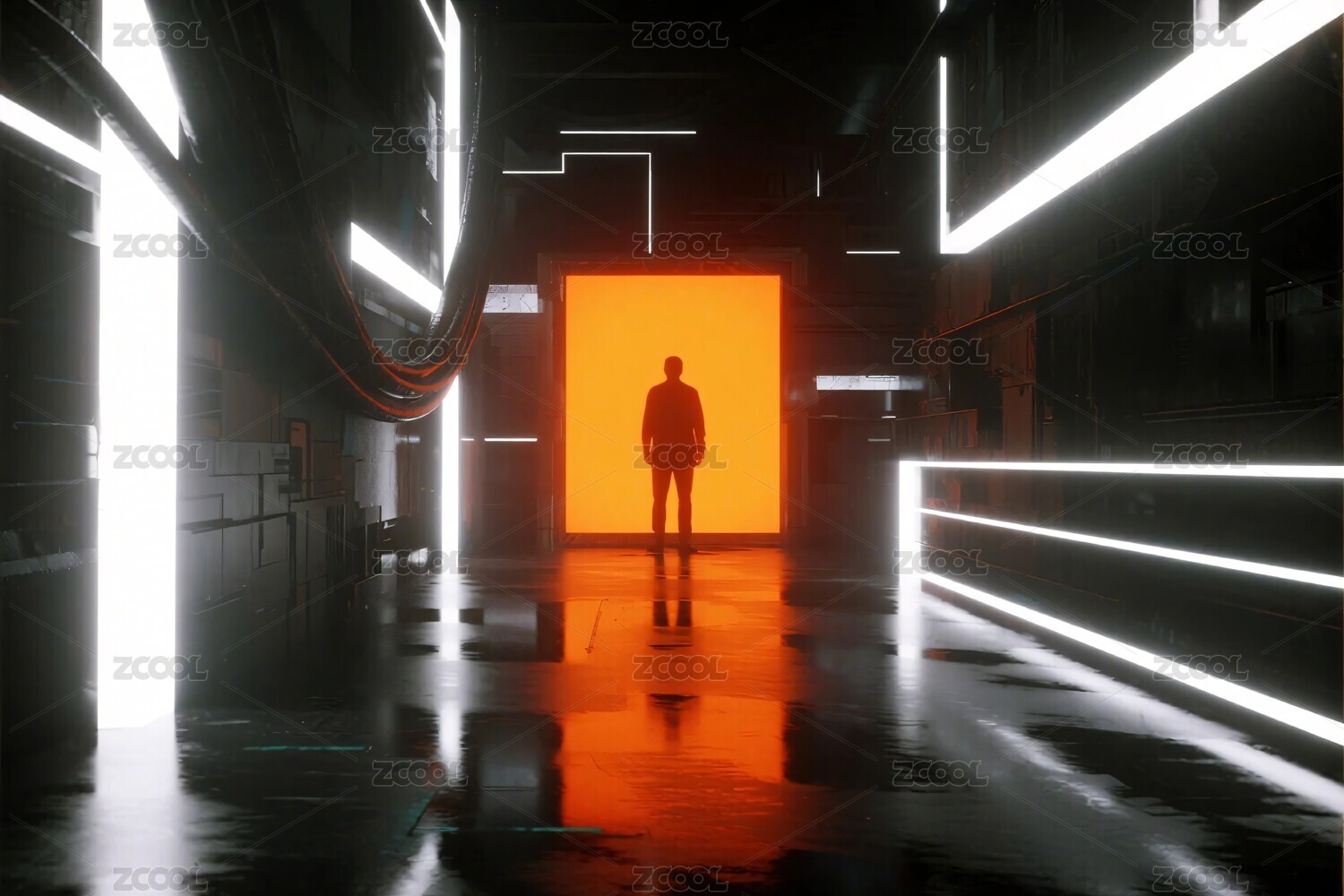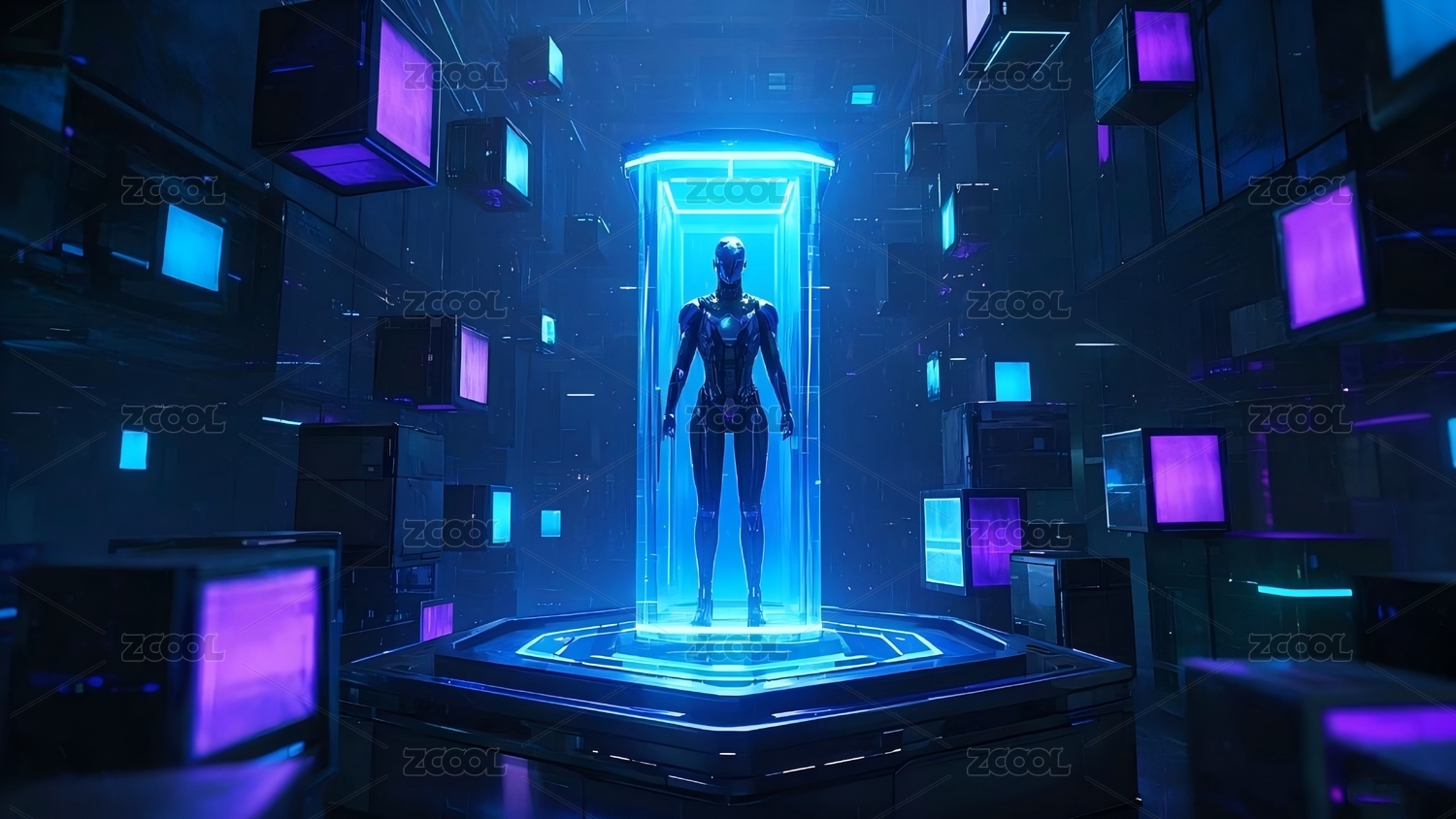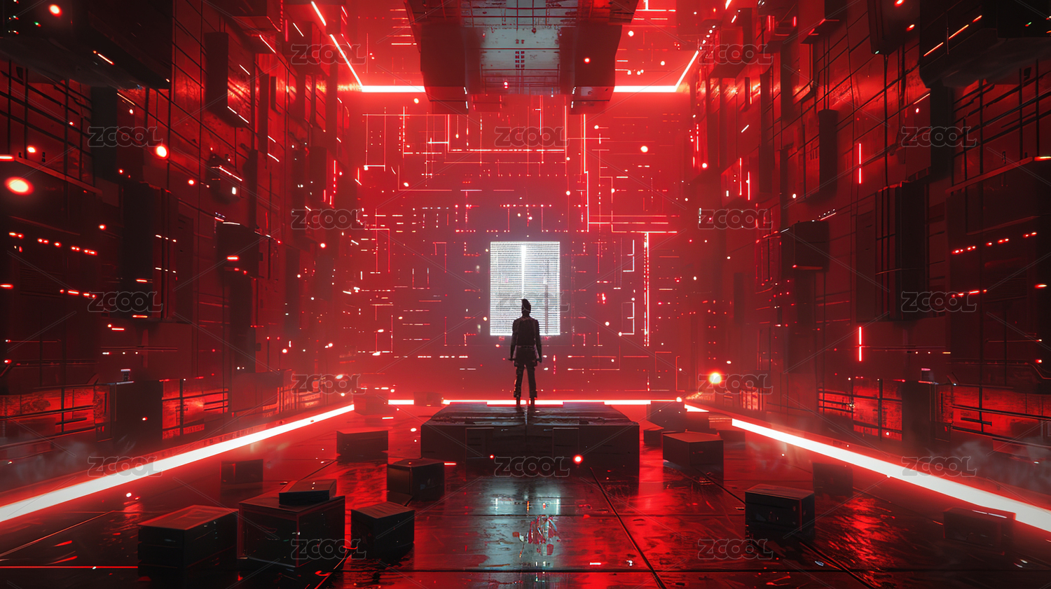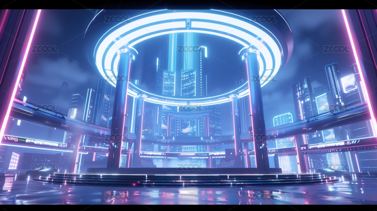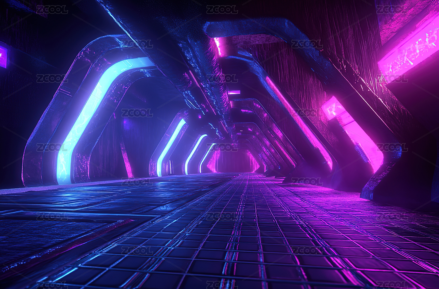 抽象霓虹灯矩阵科技感舞台,赛博朋克