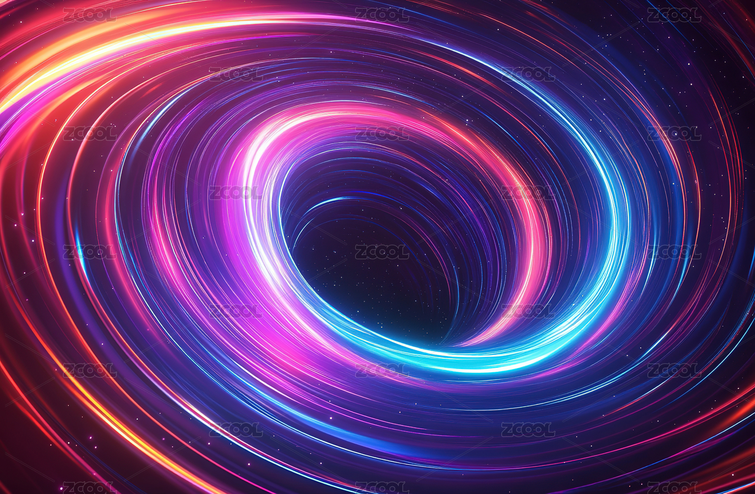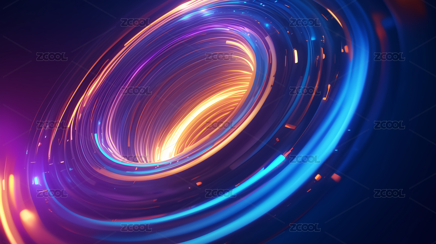 科技感发光光圈色彩斑斓螺旋状线圈概念插图
