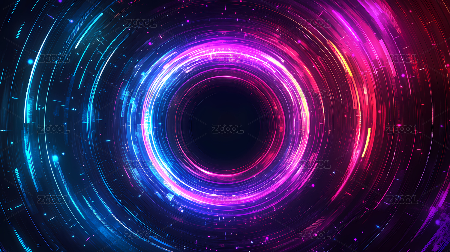 科技感发光光圈背景,蓝色背景上色彩斑斓的