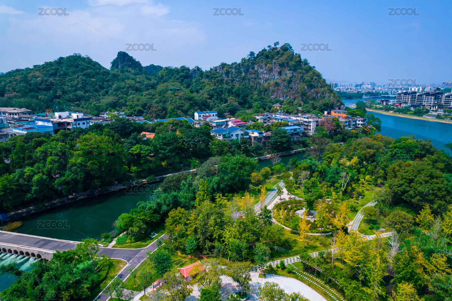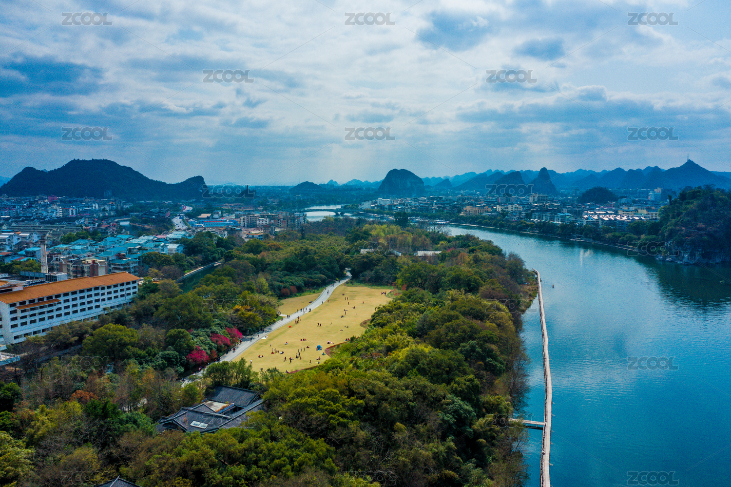 桂林,伏龙洲,航拍,夏季,旅游,景区,风景,风光,城市