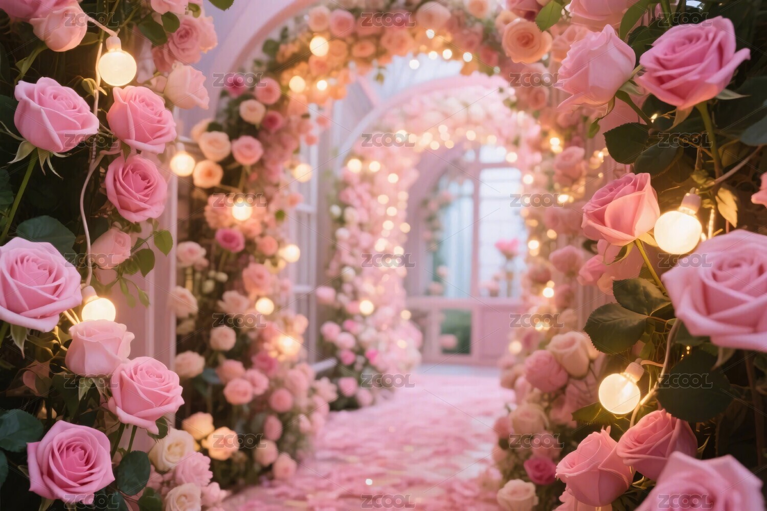 梦幻粉色心形走廊
