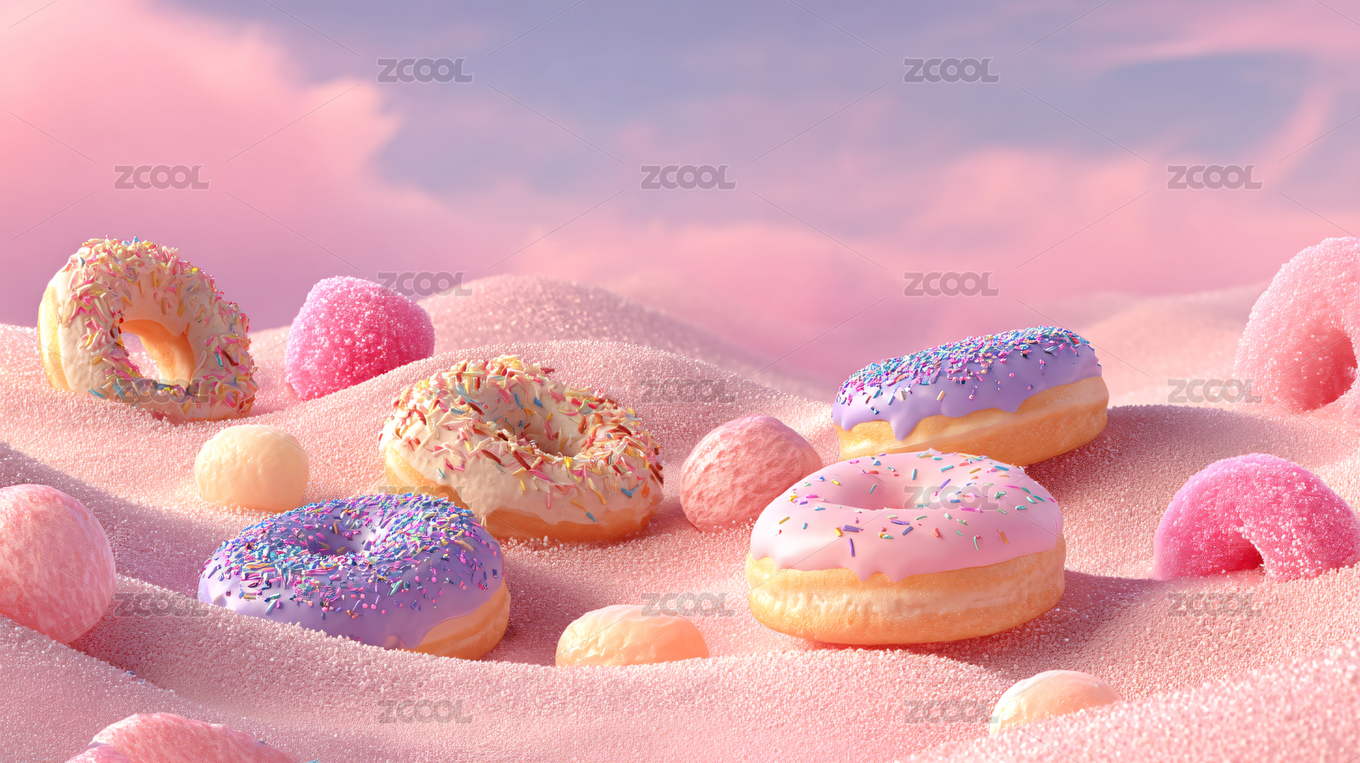 粉色甜甜圈与泡泡梦幻甜美氛围