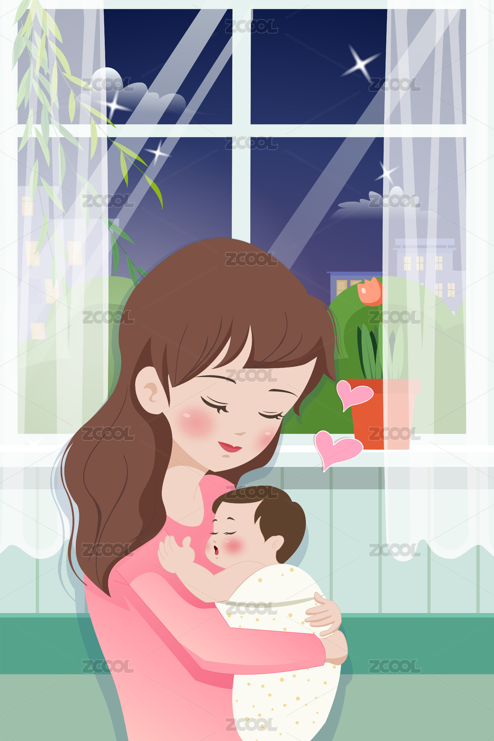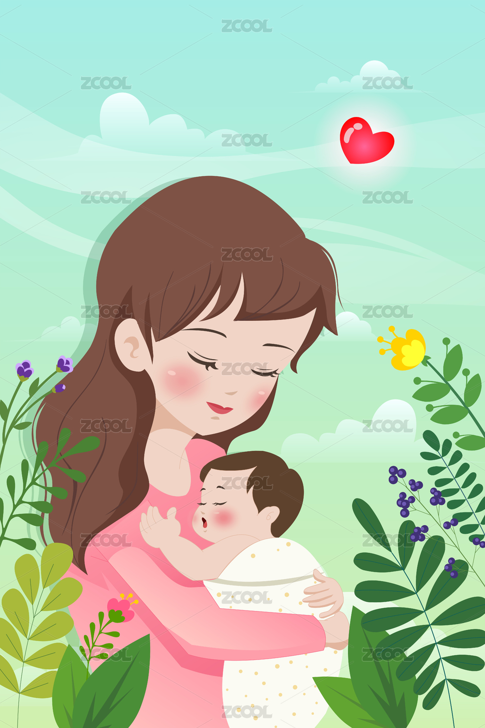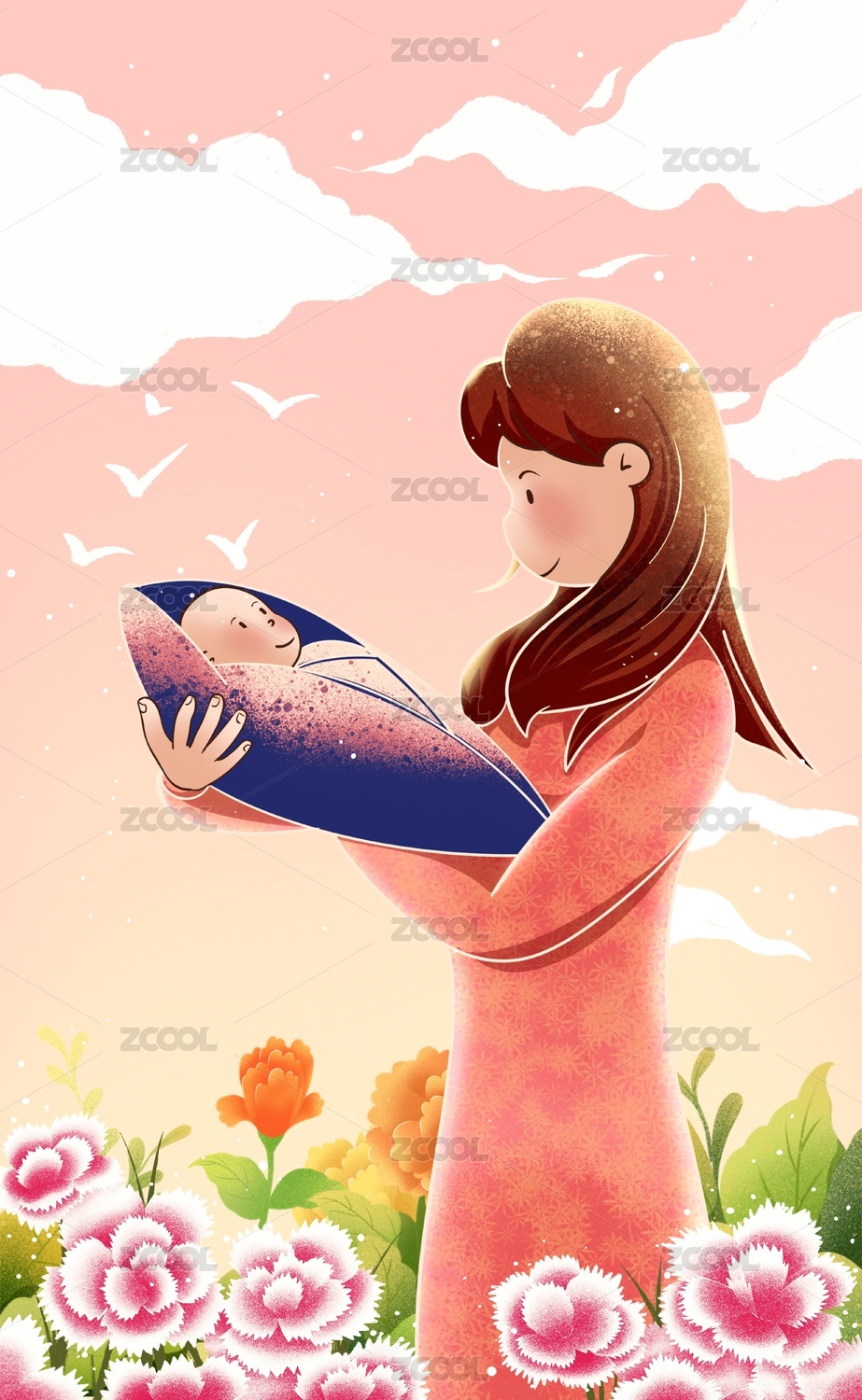母婴节日插画