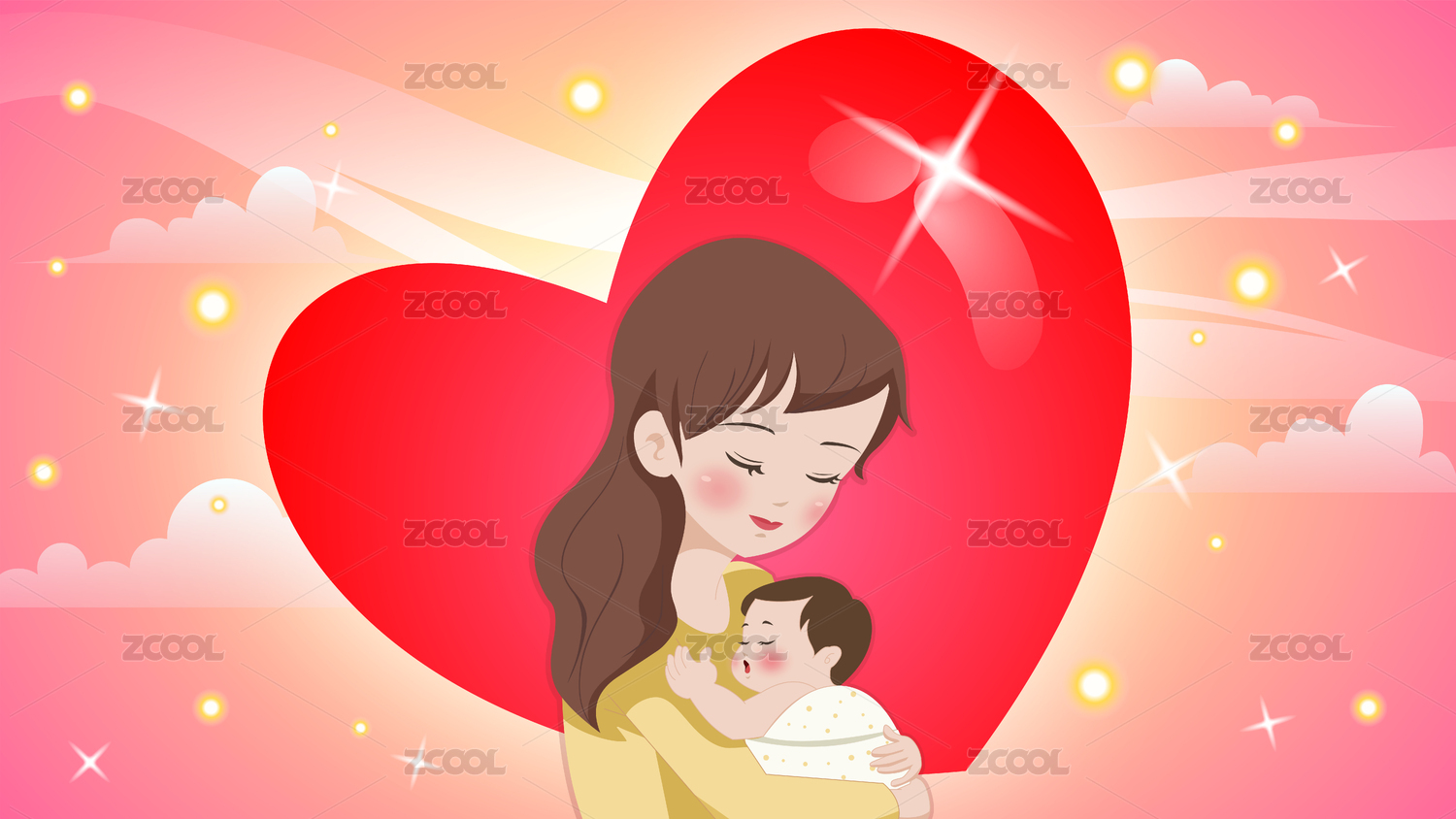 母亲节妈妈抱着婴儿萌宝插画矢量图