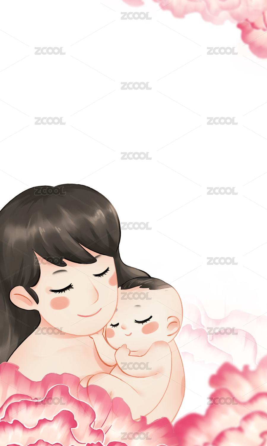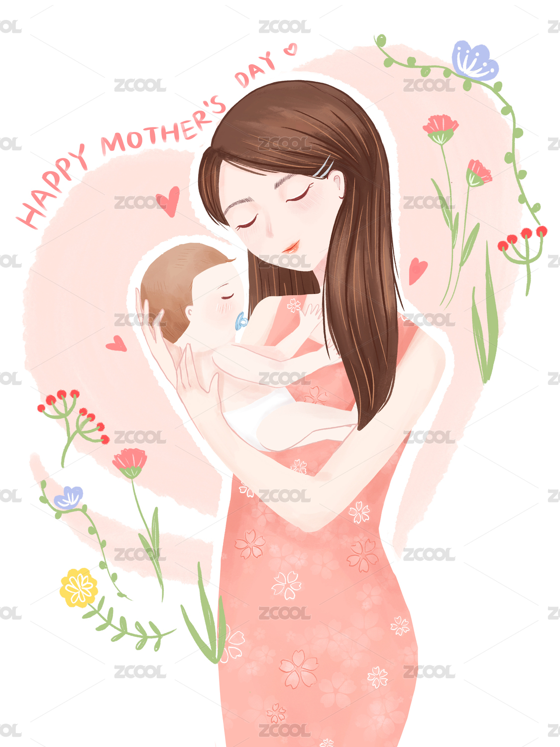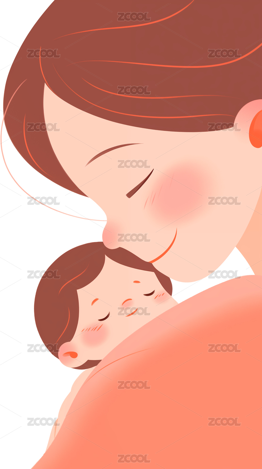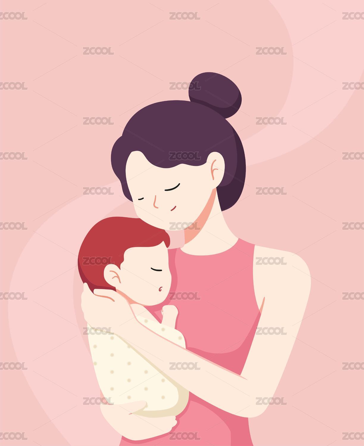 手绘插画 母亲节妈妈抱着孩子