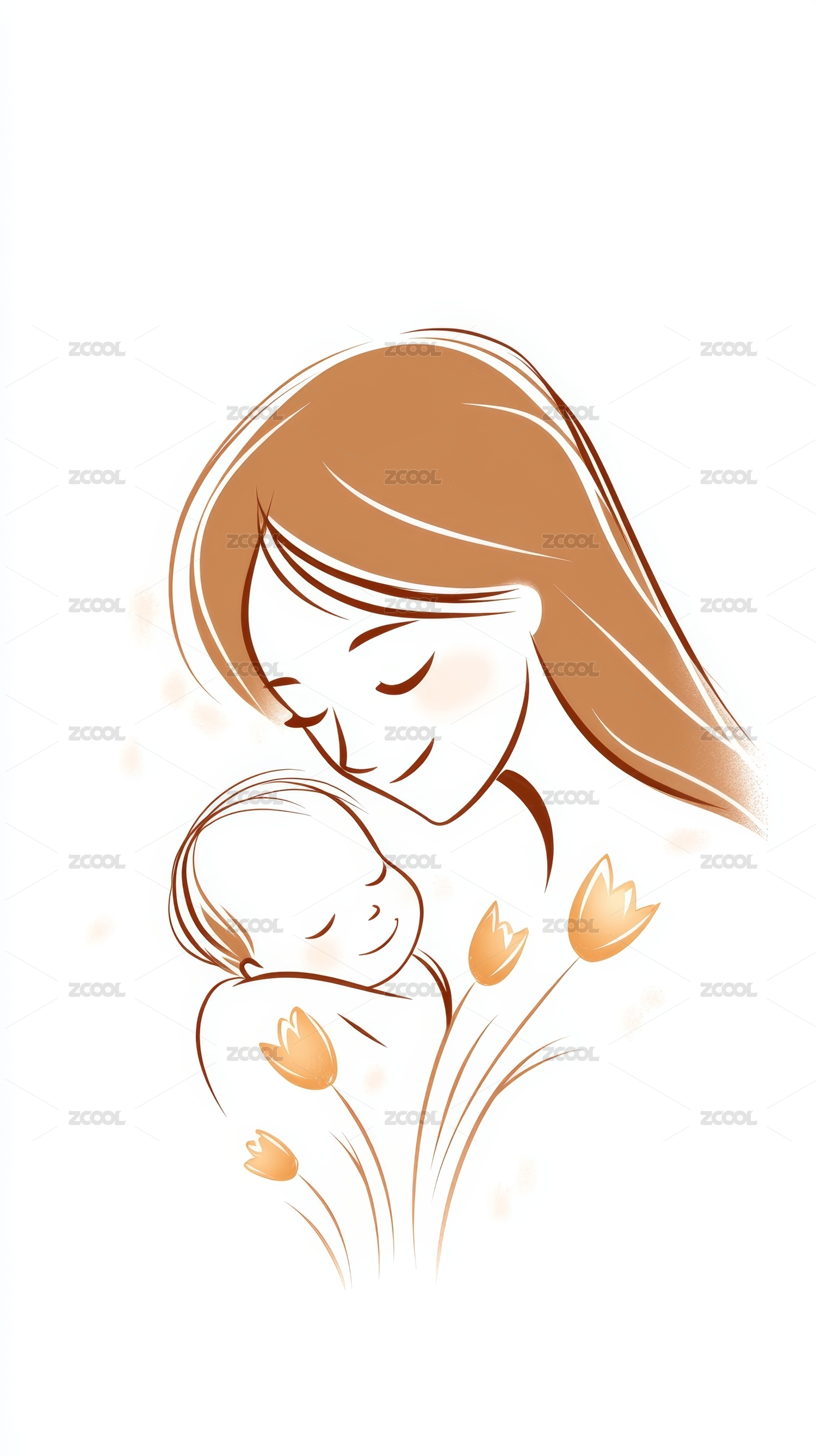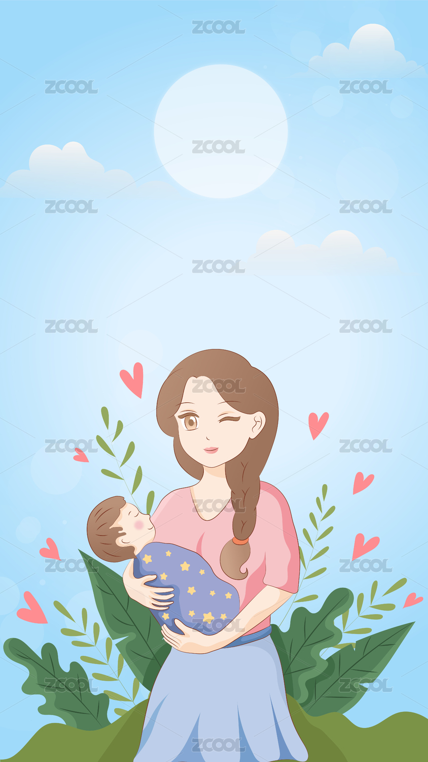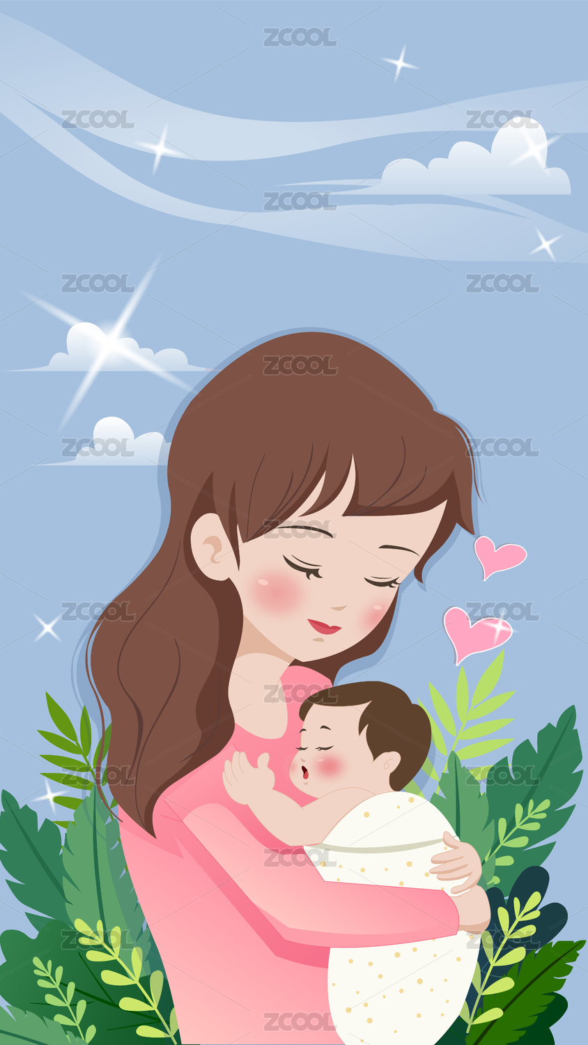 母亲抱着小婴儿竖版插画矢量图
