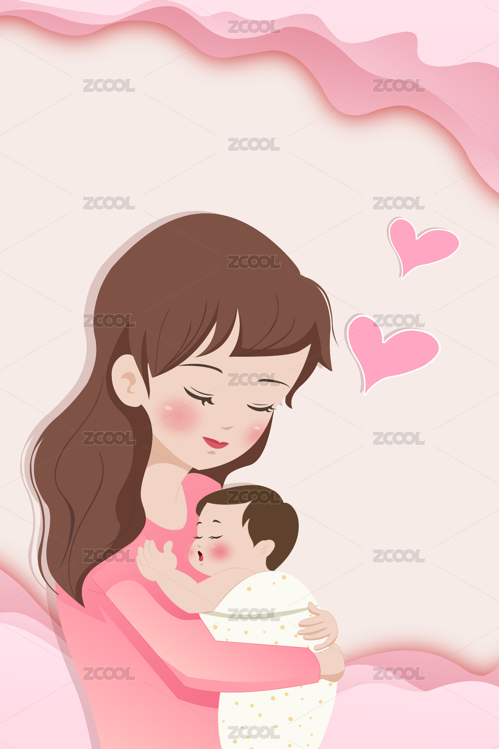 母亲节妈妈抱着萌娃竖版插画矢量图