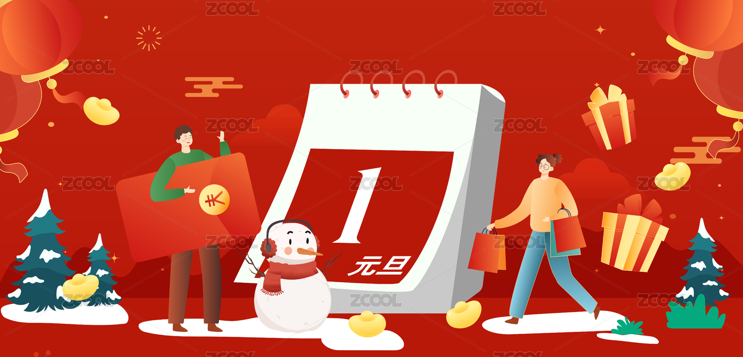 室内放在桌子上的台历在元旦前一天上画了个圈 手绘插画
