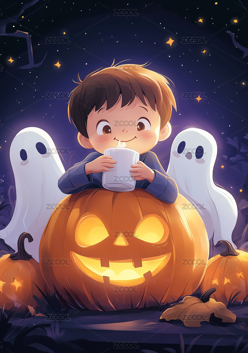 万圣节,插图,插画,绘本,南瓜,蝙蝠,城堡,鬼,幽灵,狼人