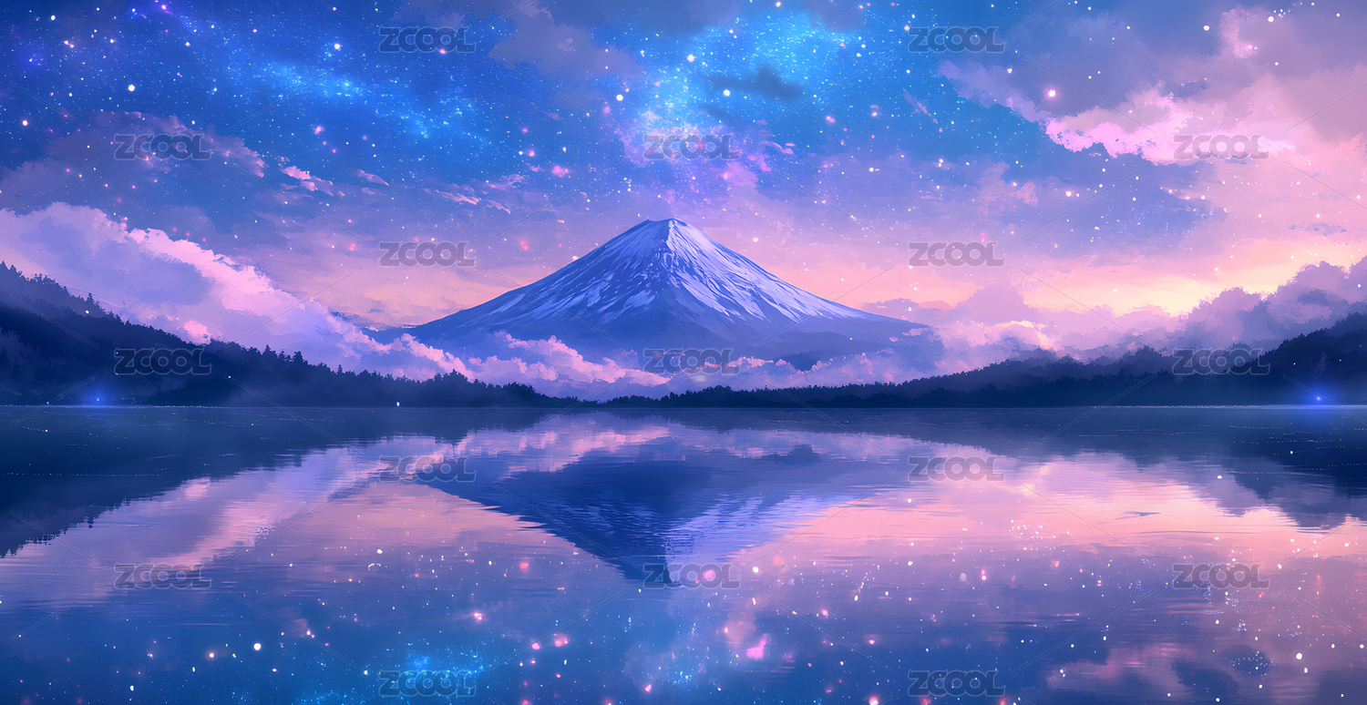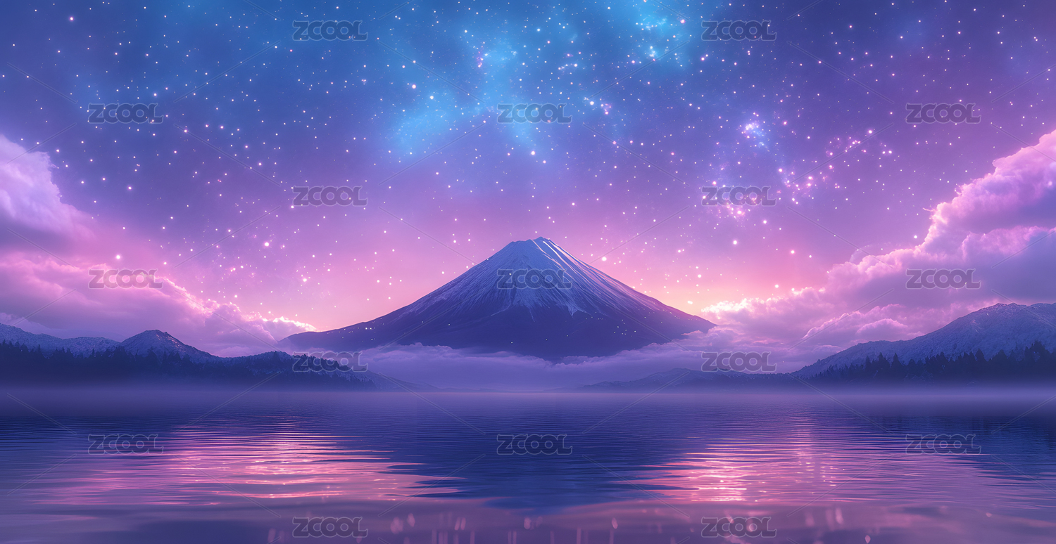 冬天晚上窗外白雪覆盖的群山雪山3D插画