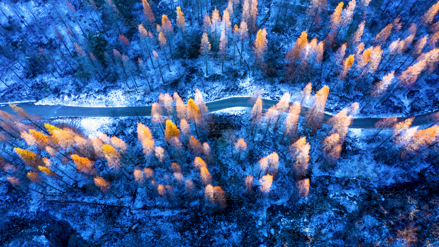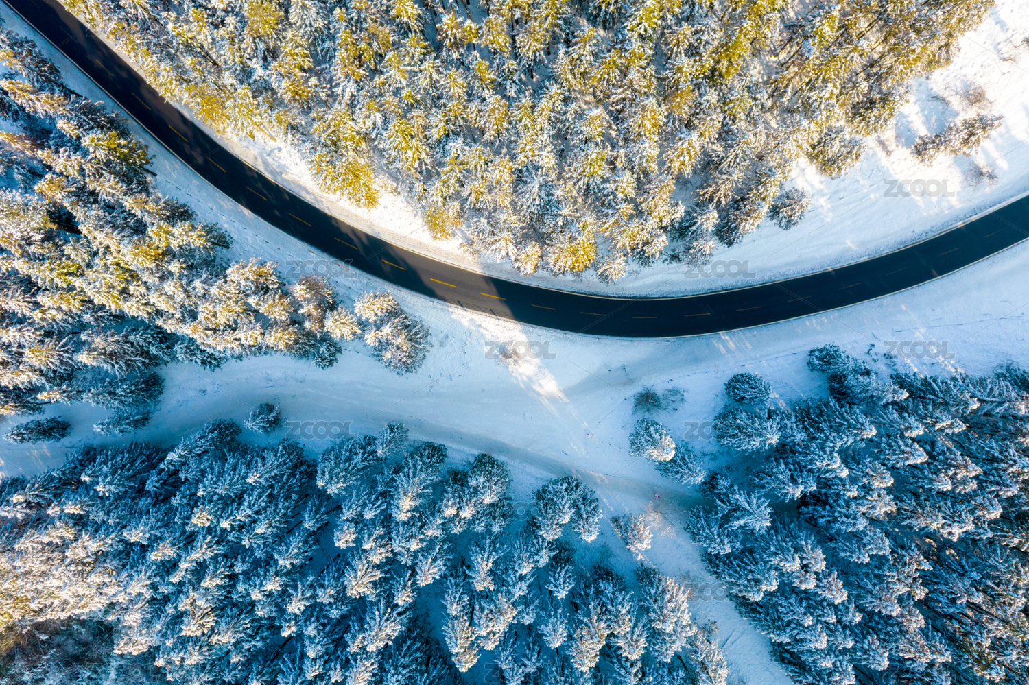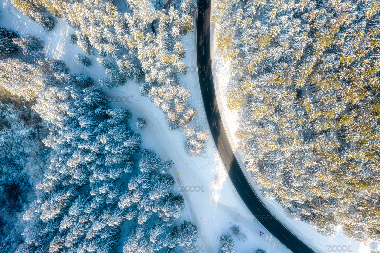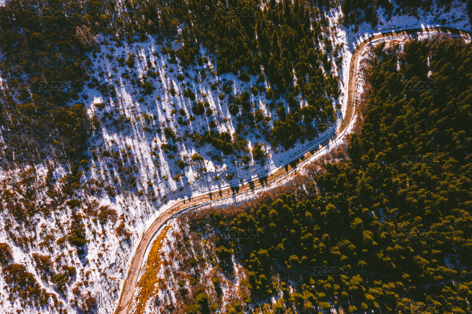 树,森林,森林雪景,公路,G210,冷,白色,航拍,俯视,秦岭