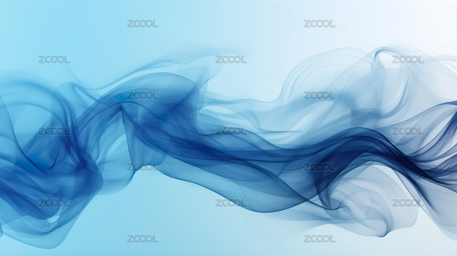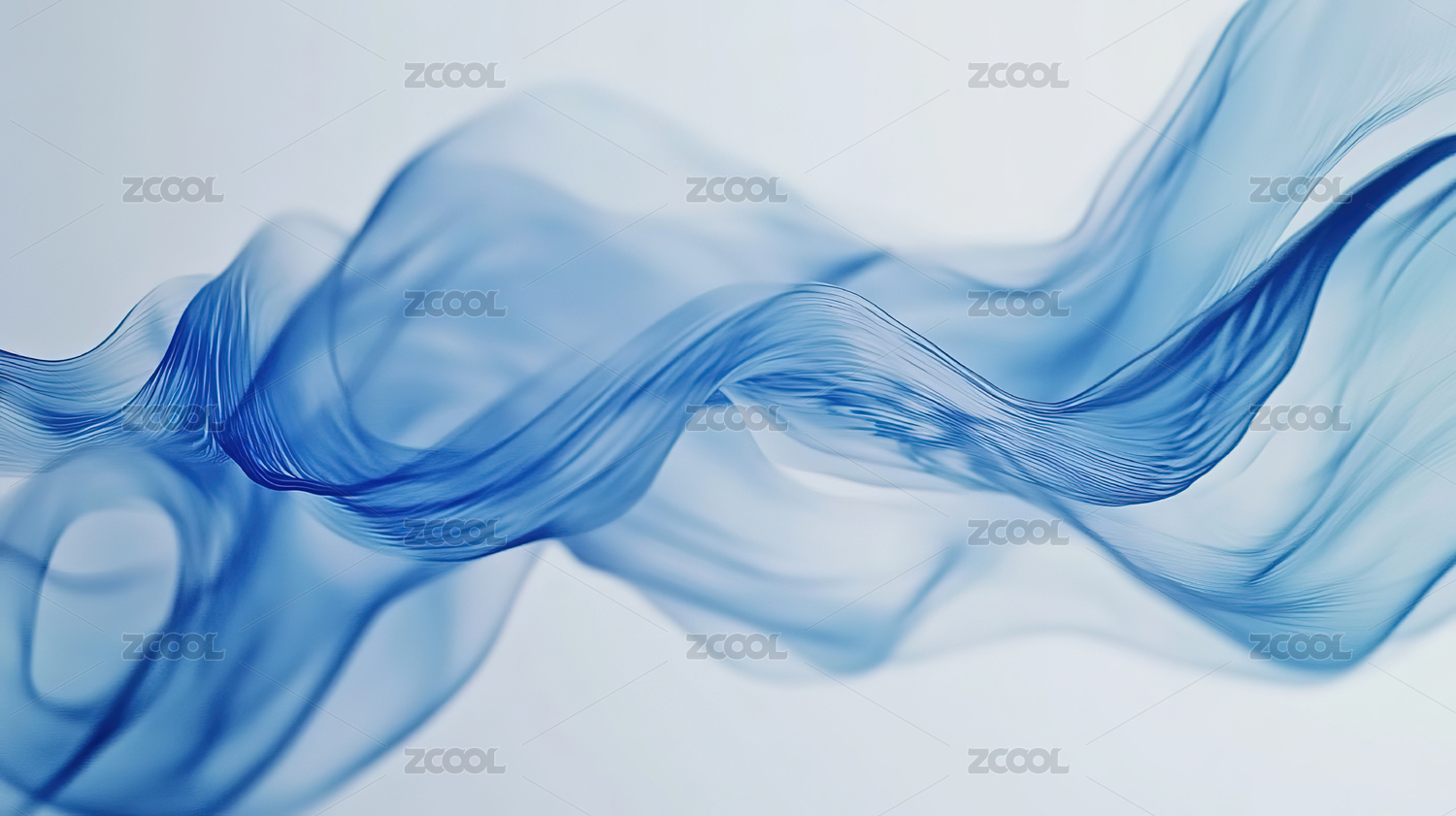 蓝色烟雾状飘带在纯净背景上