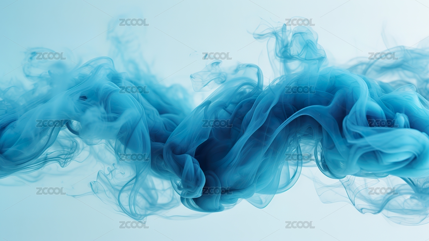蓝色烟雾在浅蓝色背景上飘散