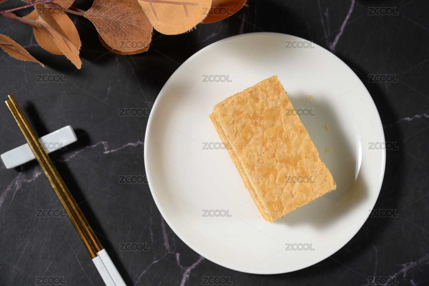 桌面上的盘子里的美味可口的拿破仑蛋糕