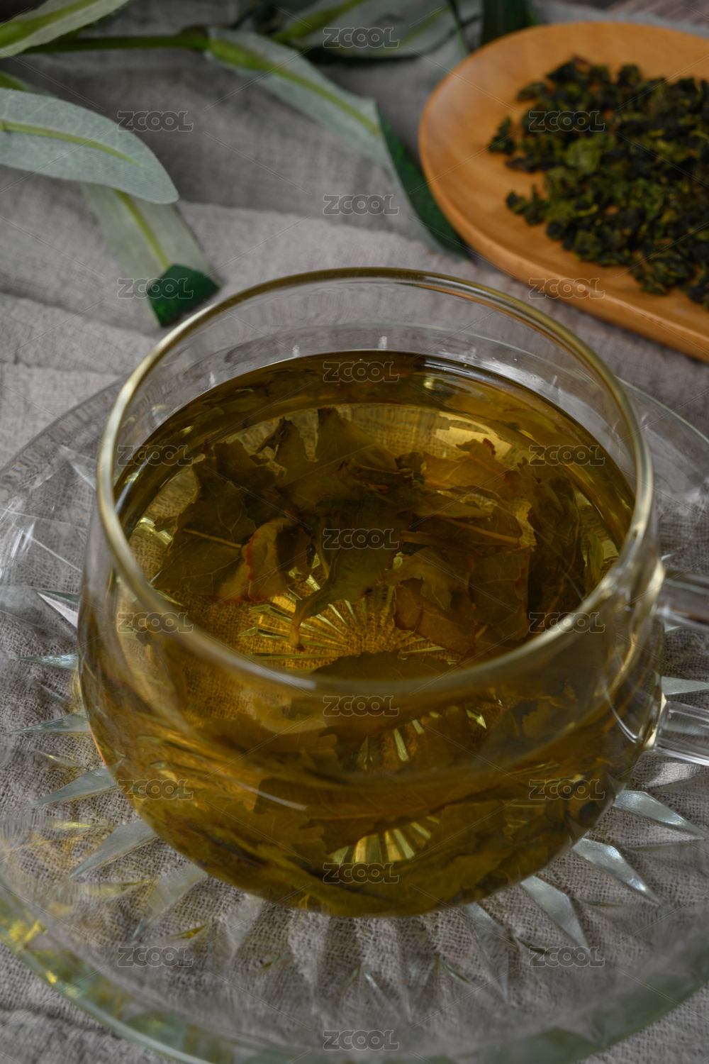 桌面上的盘子里的甘甜可口的铁观音茶