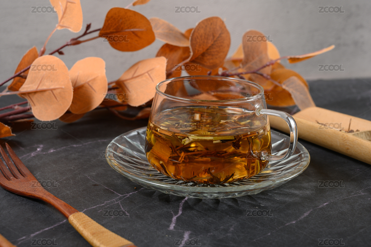 桌面上个的杯子里的甘甜可口的龙胆草茶