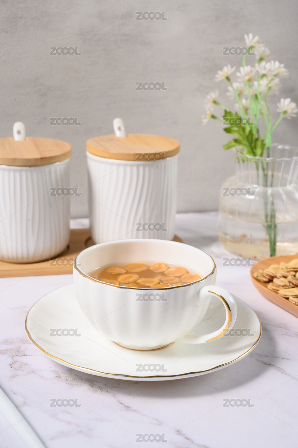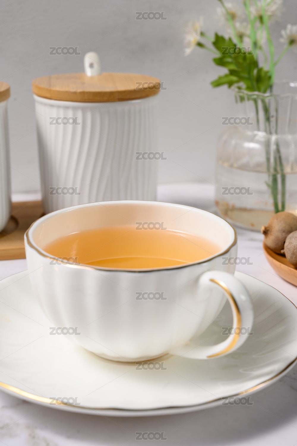 桌面上个的杯子里的甘甜可口的龙胆草茶