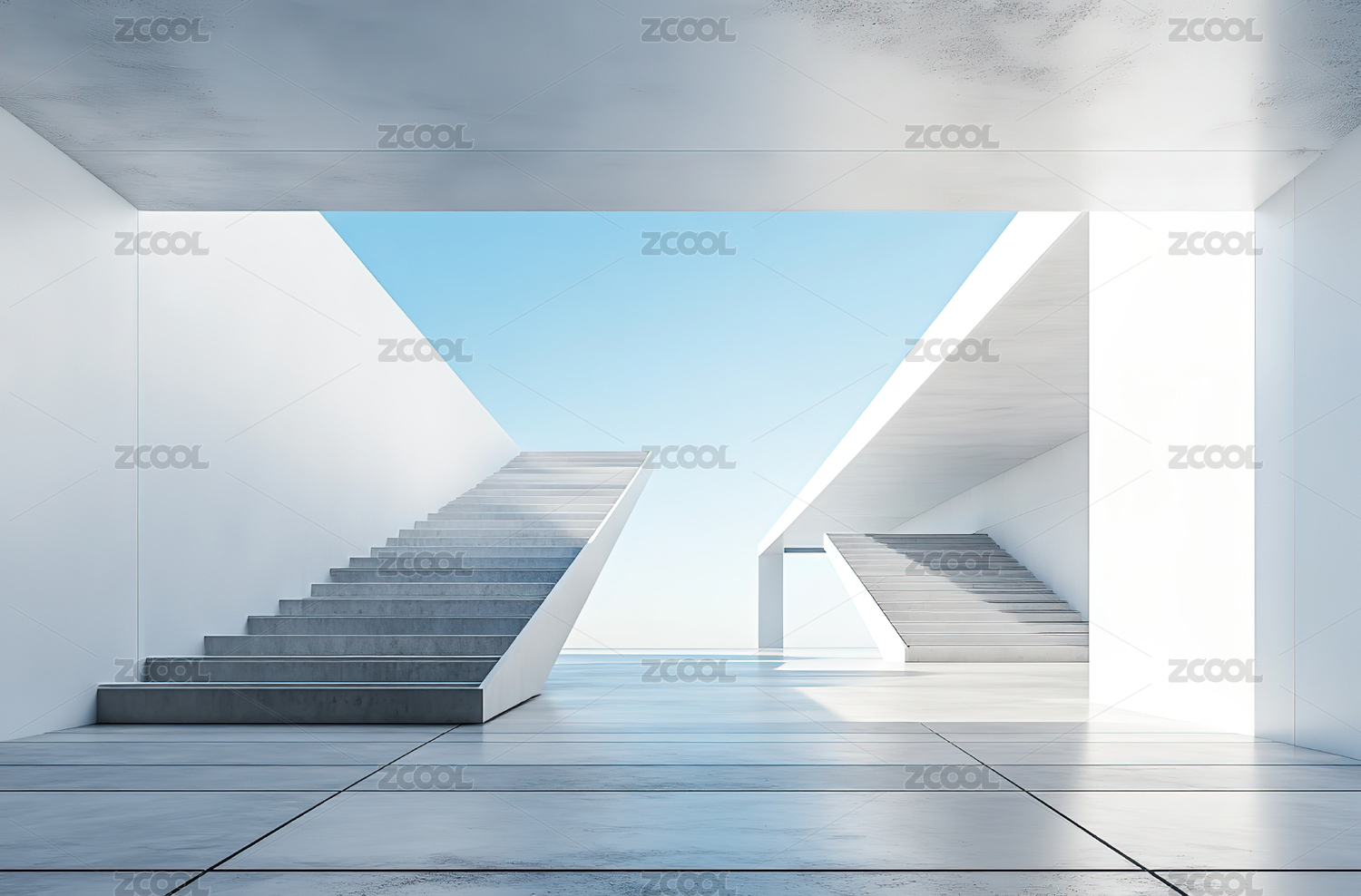 建筑,室内,楼梯,设计,墙,留白,混凝土,白色,人造空间,抽象