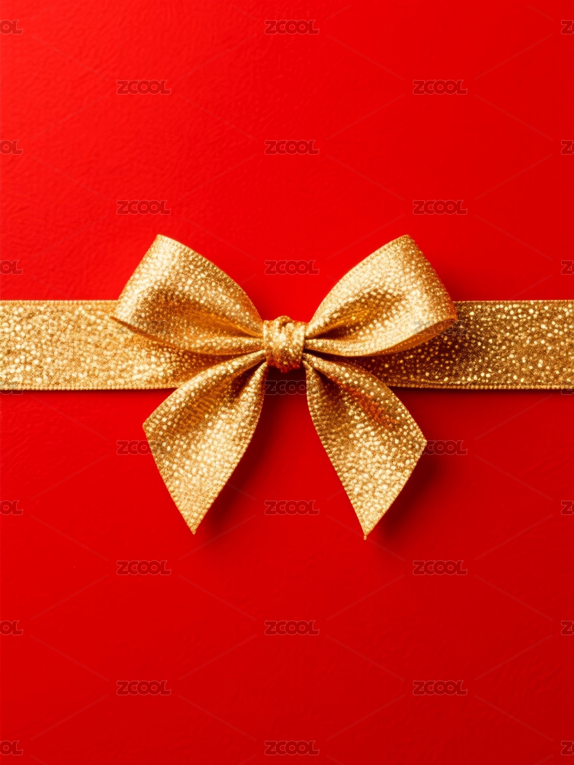 平放在红色背景的绑着香槟色带子的礼品盒局部
